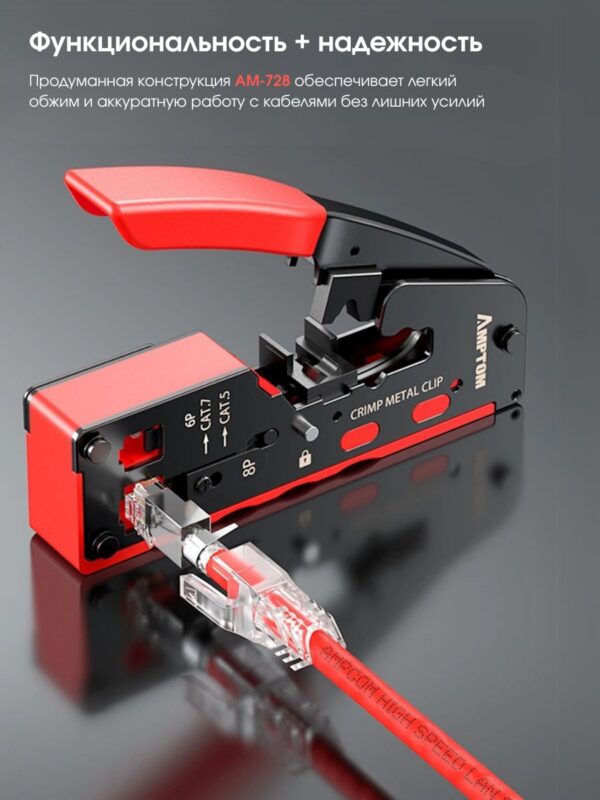 Универсальный кримпер для обжима RJ-45/RJ-11 Ampcom AM-728 — это идеальное решение для тех, кто работает с проводкой и требует высокой точности при выполнении своих задач.
