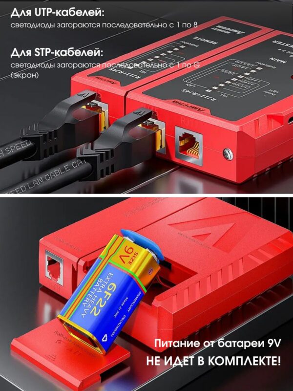 1. Тестер для витой пары (батарейка крона в комплект не входит)