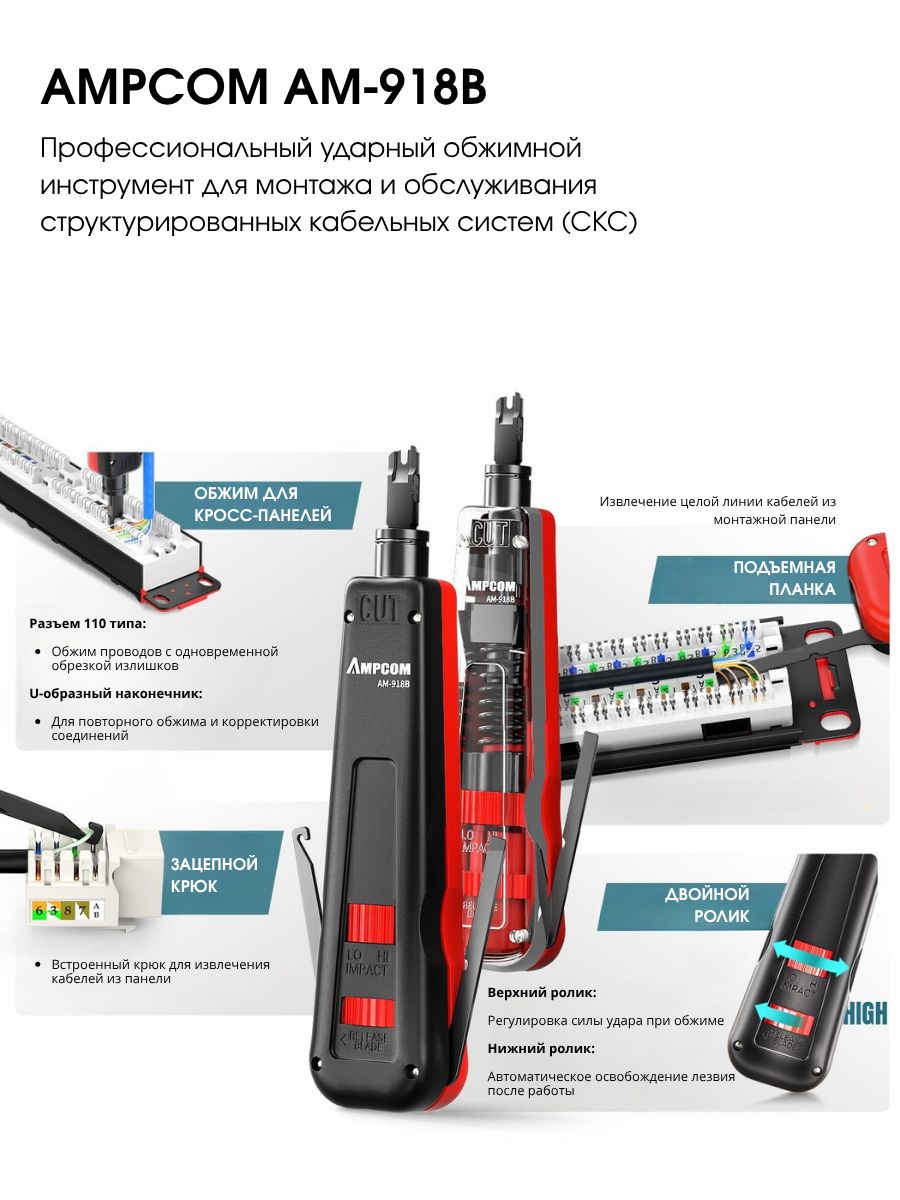 Набор инструментов AMPCOM — это идеальное решение для тех, кто работает с Ethernet кабелями. Этот набор включает в себя 9 инструментов, которые помогут вам быстро и эффективно выполнять различные задачи, связанные с витой парой.