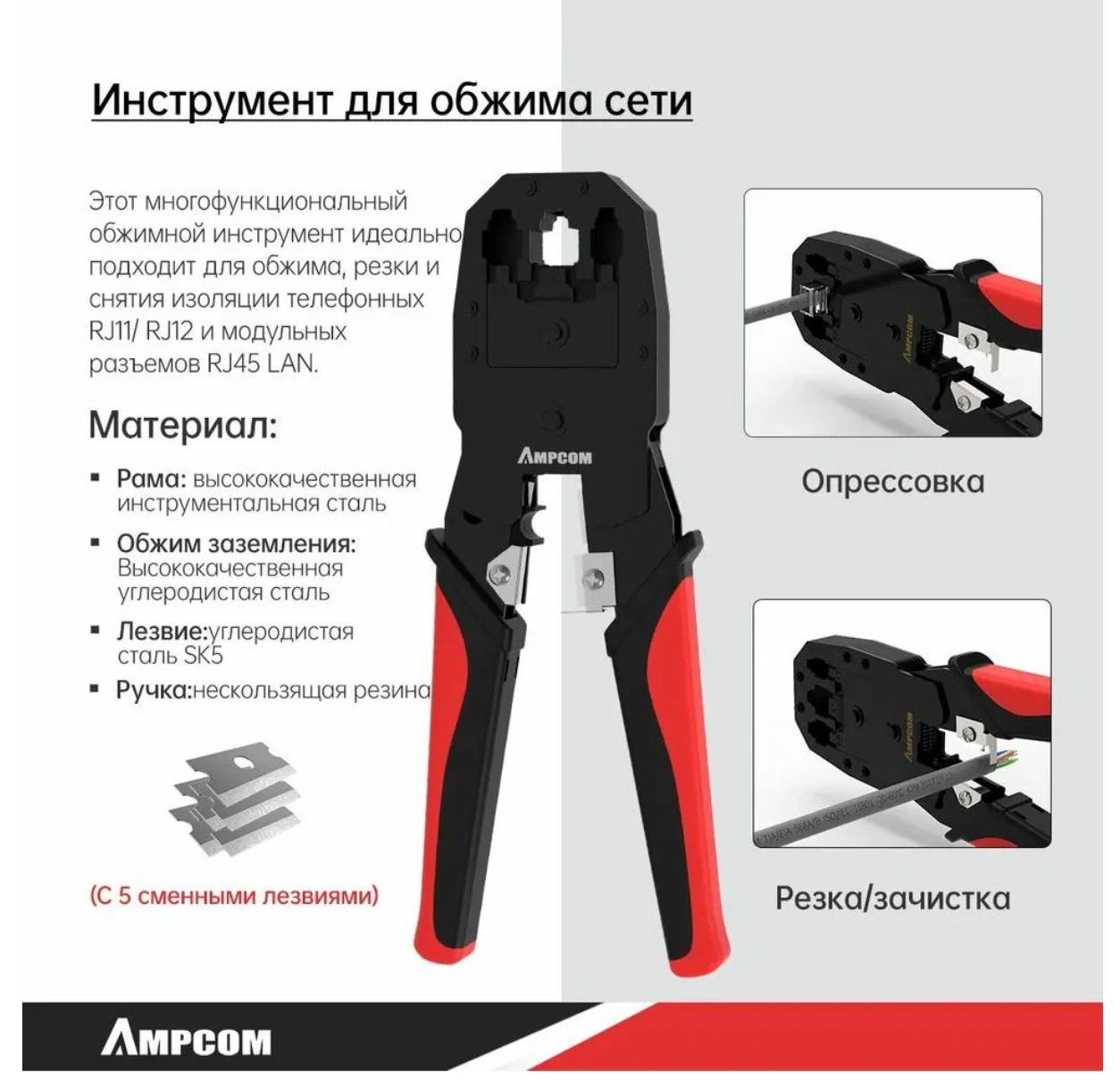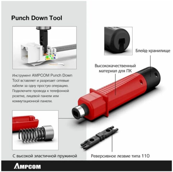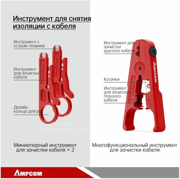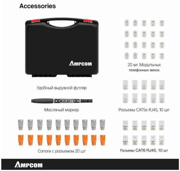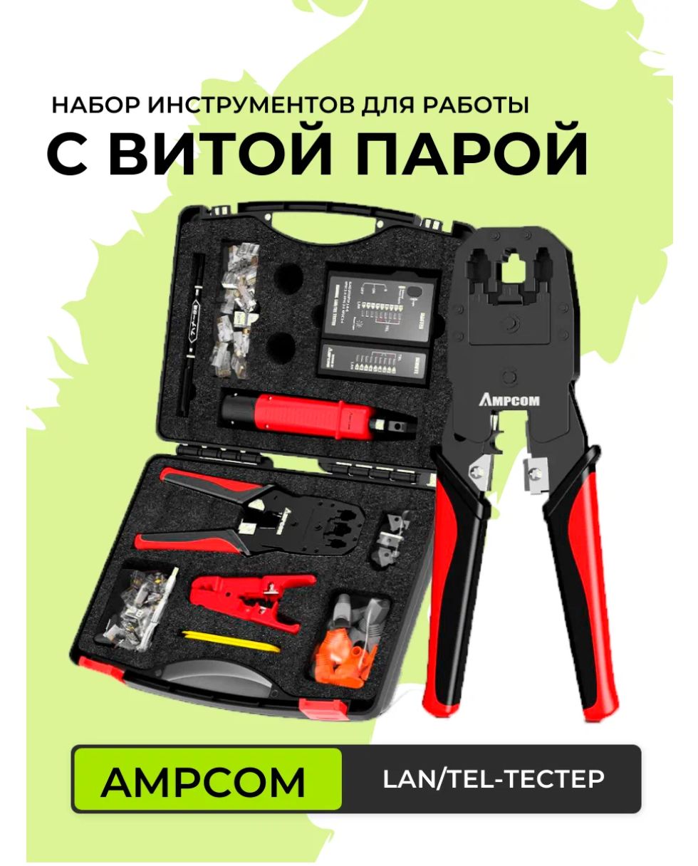 Набор инструментов AMPCOM — это идеальное решение для тех, кто работает с Ethernet кабелями. Этот набор включает в себя 12 инструментов, которые помогут вам быстро и эффективно выполнять различные задачи, связанные с витой парой.