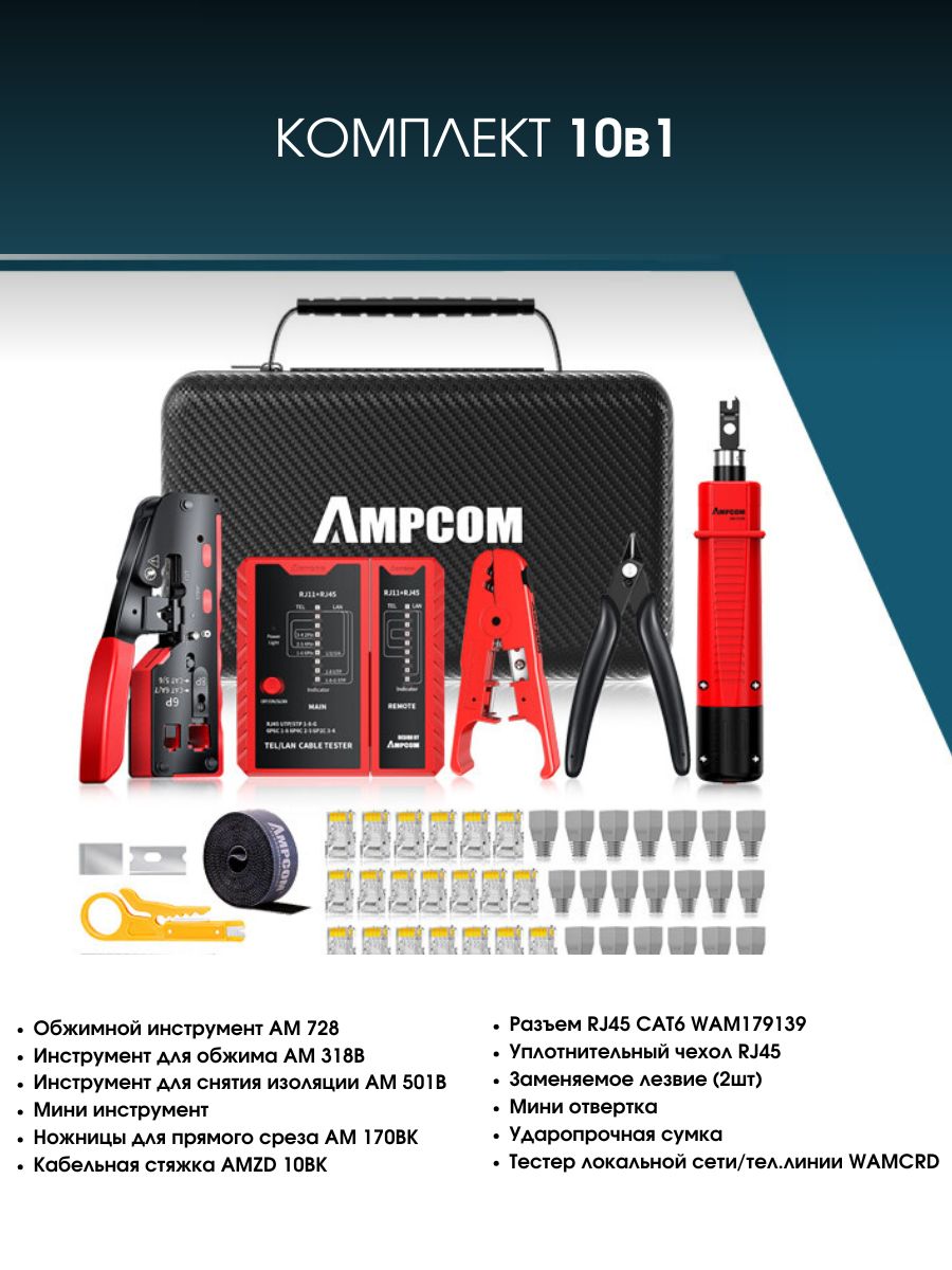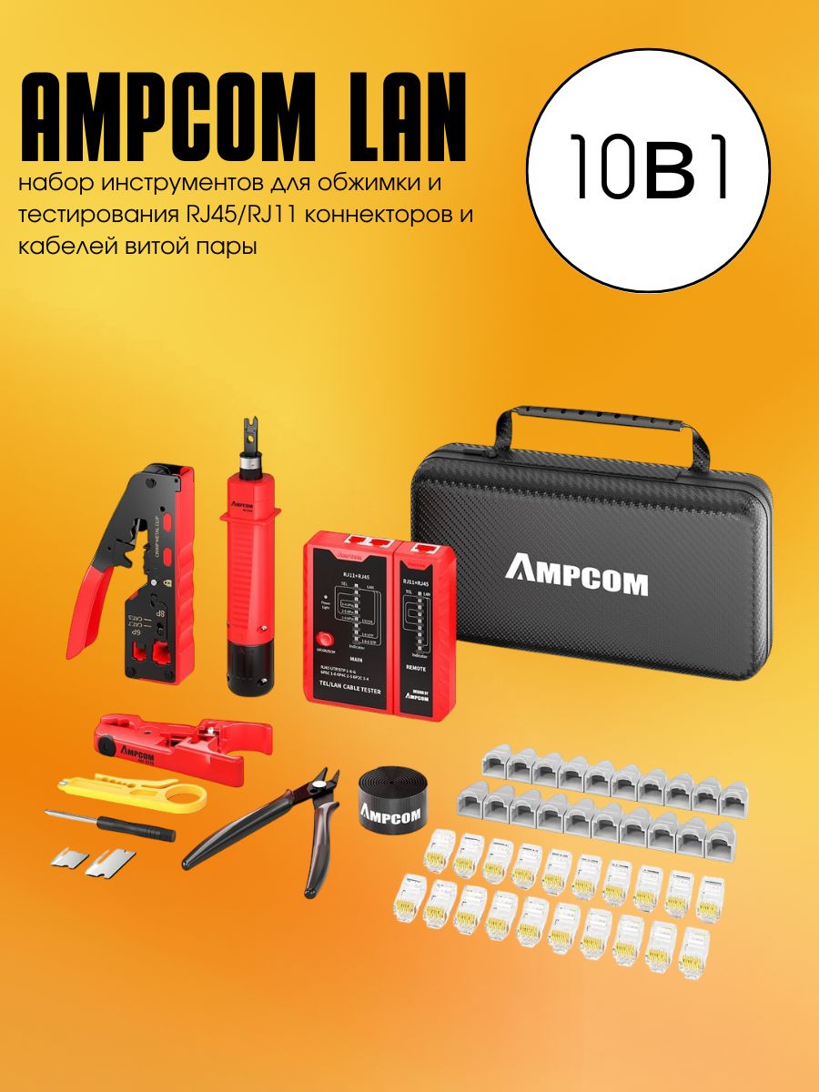 Представляем вашему вниманию уникальный набор инструментов AMPCOM LAN 10 в 1, созданный для обжимки и тестирования коннекторов RJ45 и RJ11. Это идеальный выбор для профессионалов и домашнего мастера, которые ценят высокое качество и функциональность инструмента. Набор включает в себя все необходимое для быстрой и эффективной работы с сетевыми подключениями.