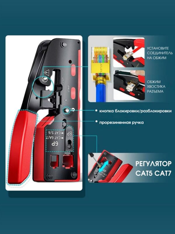 С помощью данного инструмента вы сможете легко выполнять обжимку проводов, что обеспечит надежное соединение и стабильную работу вашей сети. Удобный и эргономичный дизайн позволяет выполнять операции без лишних усилий, а продуманная конструкция делает работу более комфортной и безопасной.