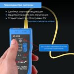 Максимальный рабочий токпередатчик: <10 мА приемник: <30 мА Расстояние передачи сигнала ≤2 км Проверка целостности кабеля — есть Проверка на непрерывность — есть Звуковая индикация — есть Регулировка громкости — есть Тестирование уровня постоянного тока — есть Подключение наушников — есть Общие характеристики Дисплейсветодиодные индикаторы ИнтерфейсRJ-45, RJ-11, Jack 3.5 Источник питания передатчика — батарейка 9 В Габариты передатчика 126 x 49 x 34 мм Габариты приемника 175 x 42 x 27 мм Вес брутто 320 г