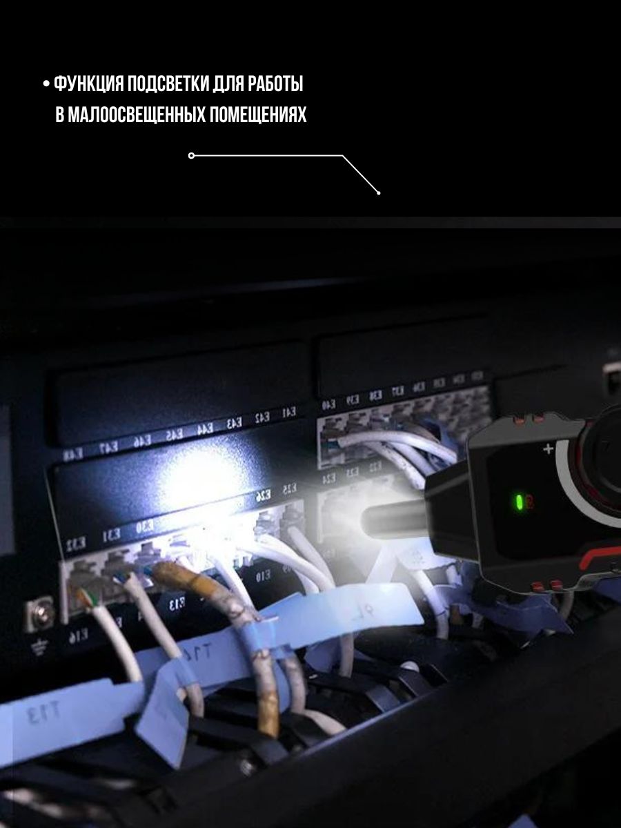 Кабельный тестер отличается компактными размерами и легким весом, что делает его удобным для переноски и хранения. Интуитивно понятный интерфейс позволяет без труда проводить проверки даже без специальной подготовки, что особенно важно для тех, кто работает с кабельными системами.