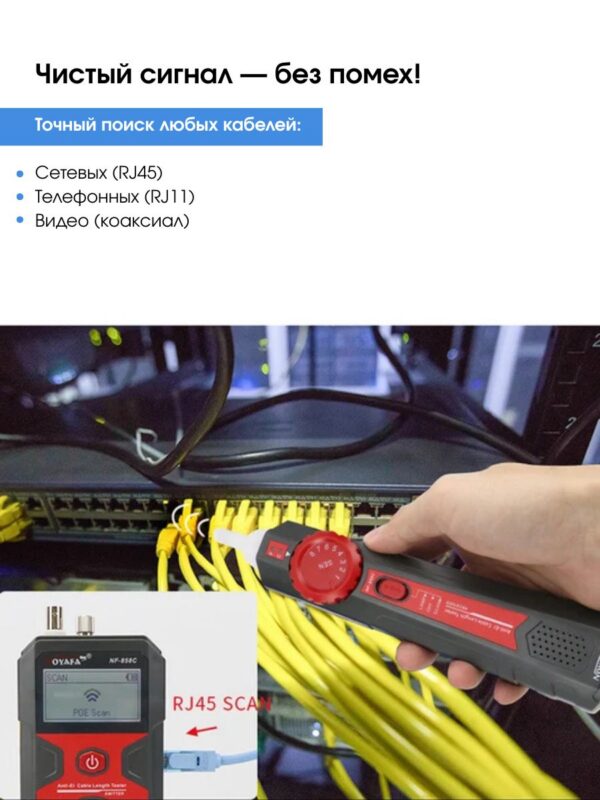 Кабель для прозвонки, подсоединённый к коммутатору — помехоустойчивый