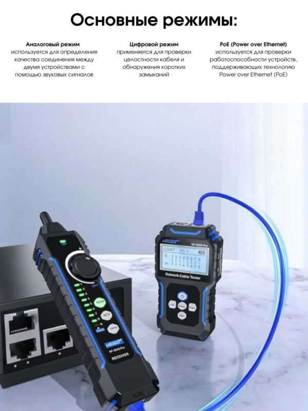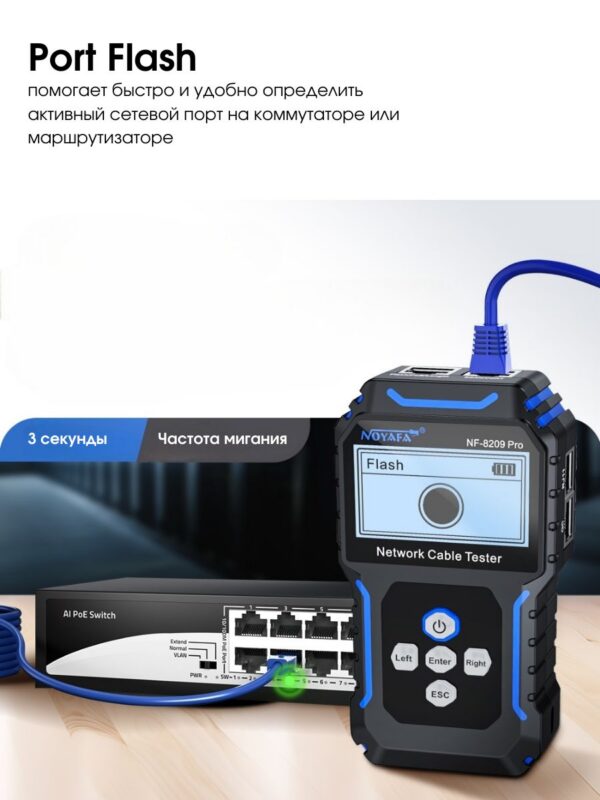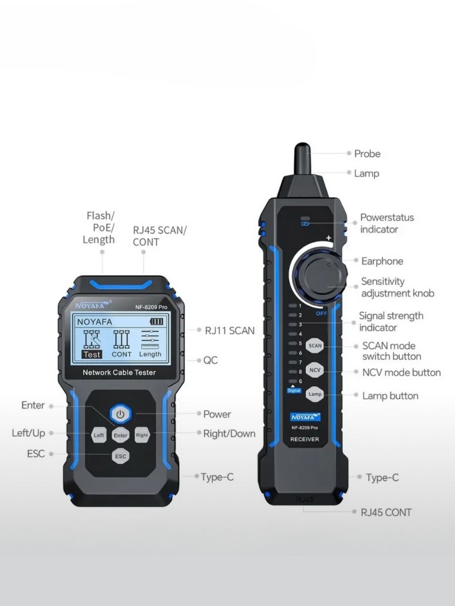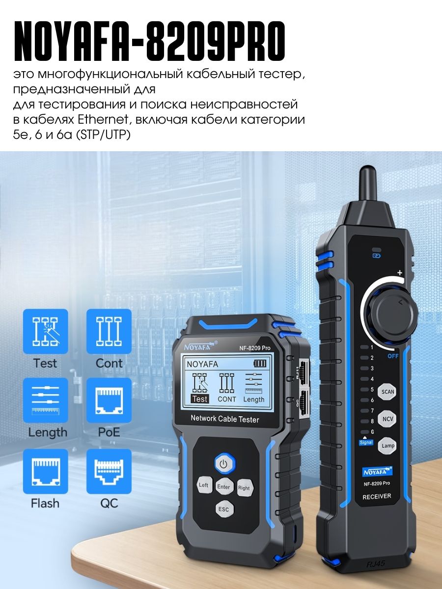 Noyafa NF-8209 Pro – это идеальное решение для всех, кто хочет быстро и эффективно тестировать кабели и устранять неполадки в сетях.