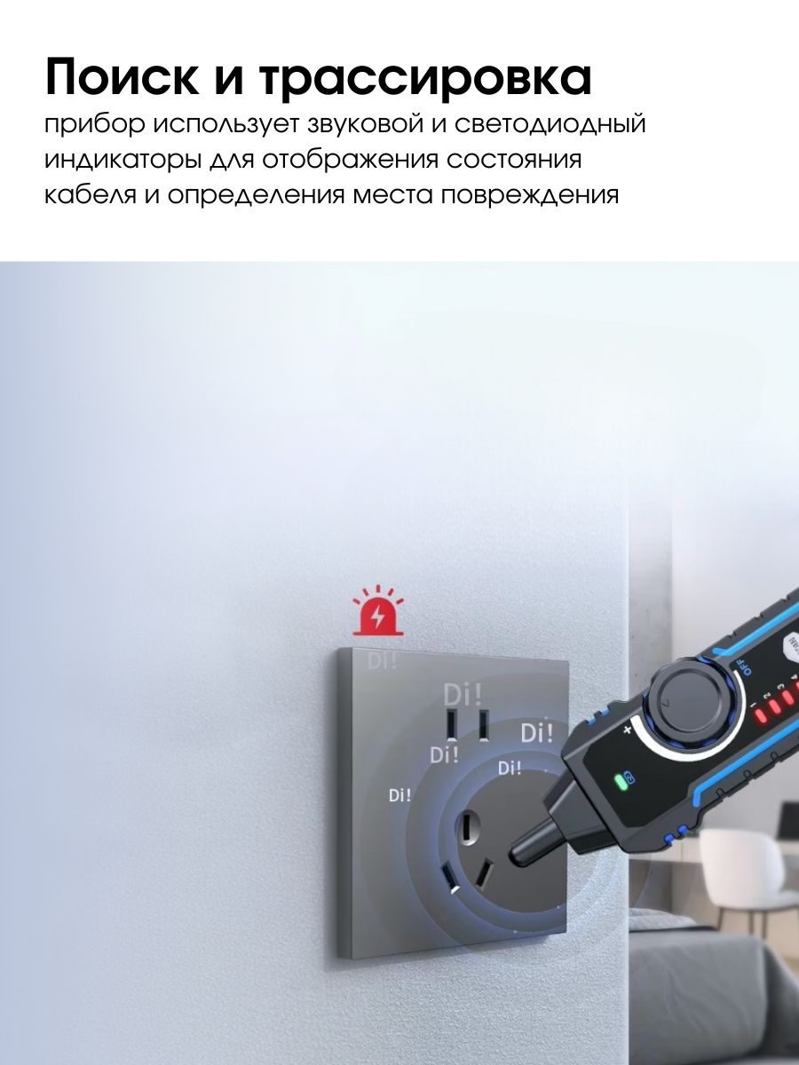 - Функция «Трассировка кабеля» Позволяет быстро найти нужный кабель в пучке с помощью зондирования. Это значительно упрощает работы в больших слаботочных сетях.