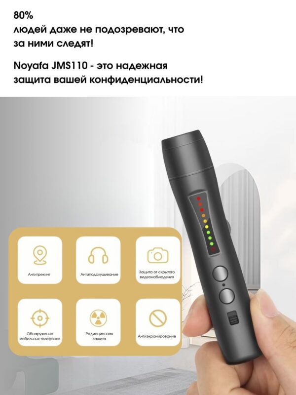 JMS110 — это интеллектуальный инфракрасный детектор, разработанный на основе передовых немецких технологий. Он предназначен для выявления большинства устройств прослушивания, представленных на рынке.