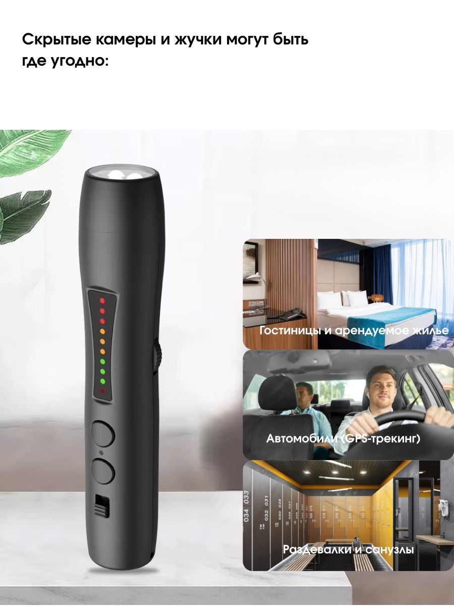 - Применение: поиск скрытых камер, подслушивающих устройств, GPS-маяков.