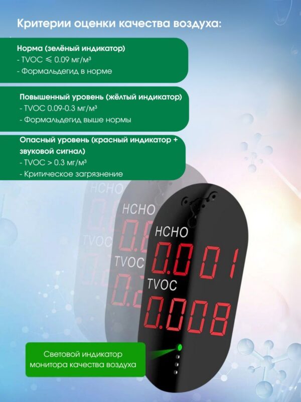 Обнаруженный газформальдегид (CH2O), летучие органические вещества (TVOC)