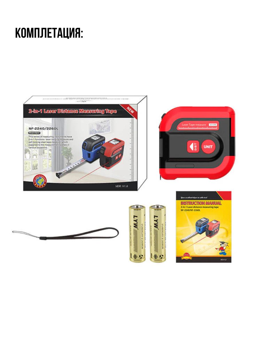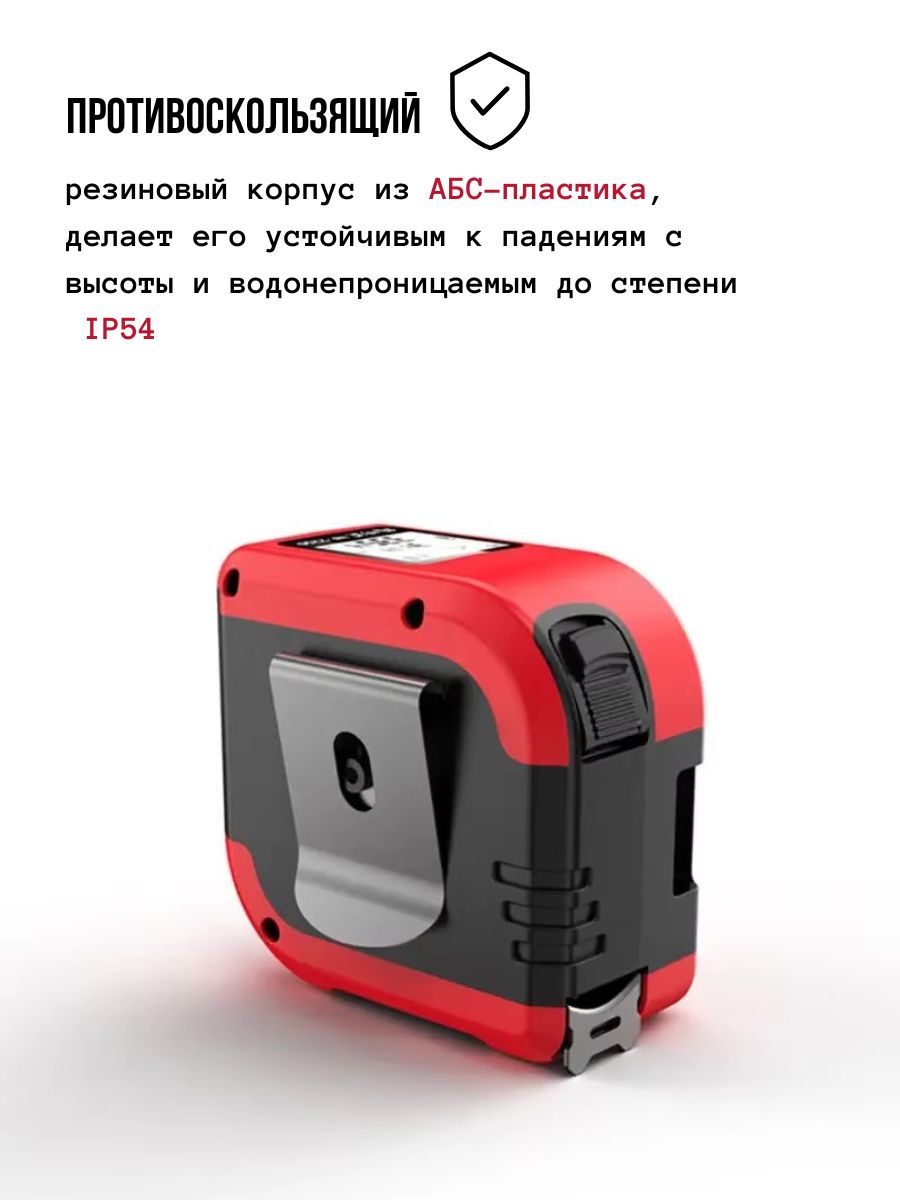 Прибор обеспечивает быстрое проведение измерения лазерным дальномером с помощью одной кнопки с высокой точностью ±2 мм. Устройство оснащено ЖК-дисплеем для удобного считывания показаний, звуковым сигналом перед началом измерения и функциями непрерывного измерения, автоматического выключения лазера через 30 секунд бездействия и автоматического выключения питания устройства при отсутствии активных действий в течение 2 минут.Лазерную рулетку-дальномер 2 в 1 (5м/40м) NOYAFA NF-2240 широко применяют для промышленных измерений и бытовых нужд, в строительстве, при монтаже металлоконструкций, для проведения ремонтных работ и тому подобное.