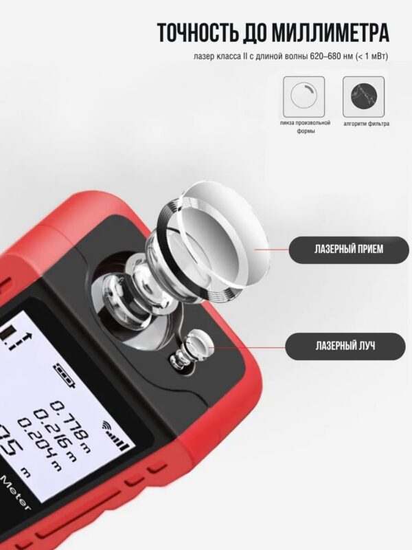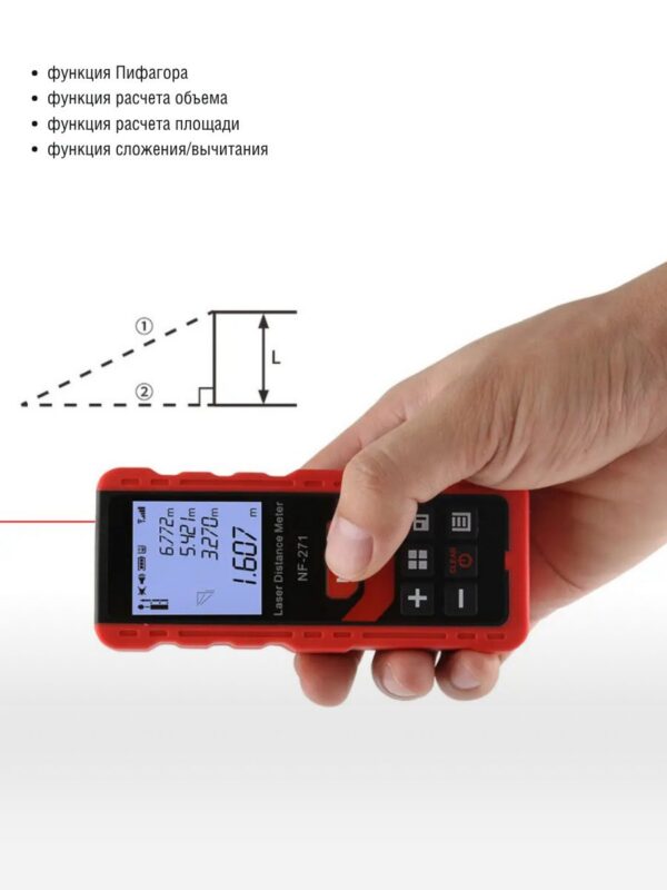 - Измерение с точностью — Одиночное/непрерывное измерение, положительное и отрицательное измерение, а также автоматическое горизонтальное/вертикальное измерение. (точность 50м+-2 мм)