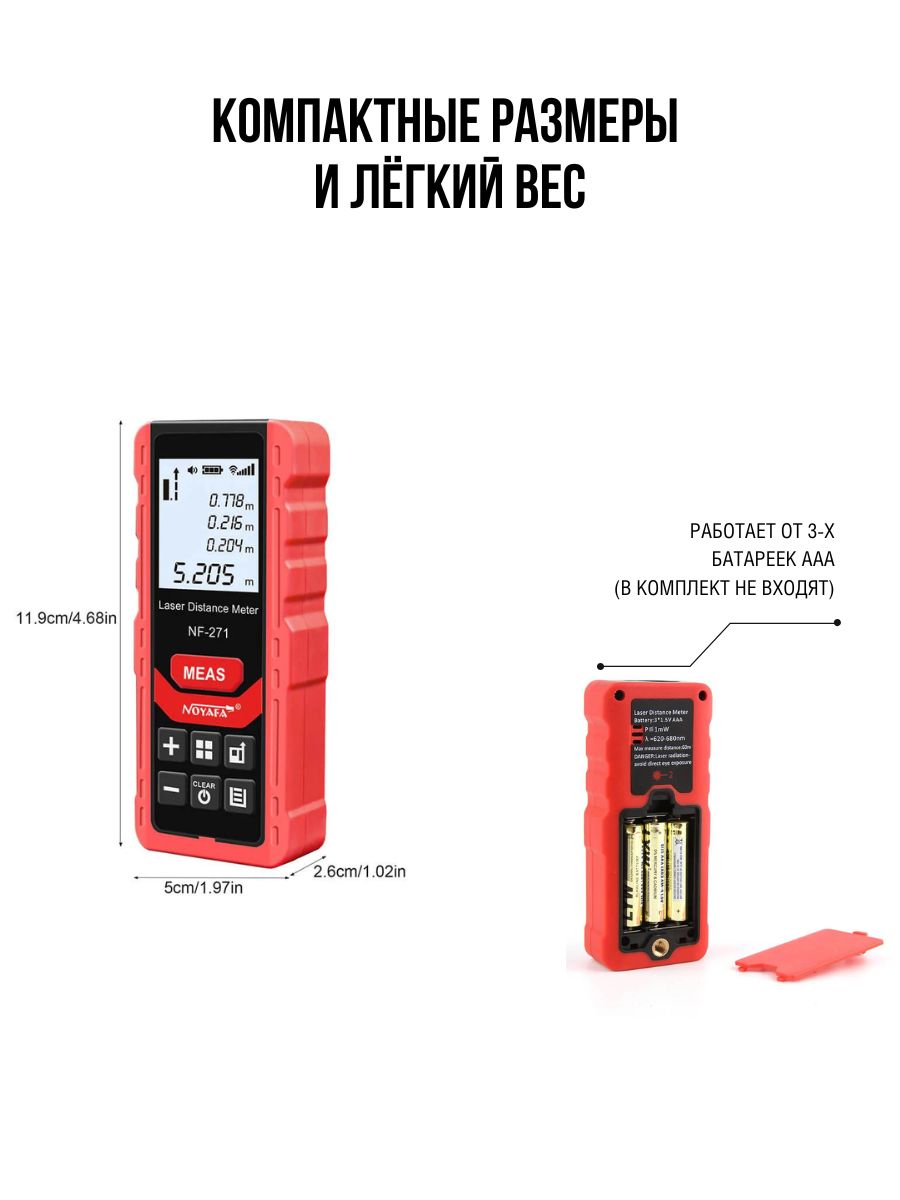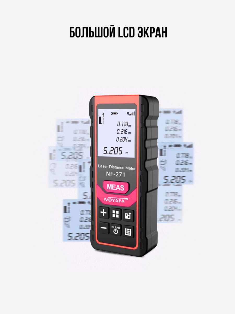 - Яркий дисплей — лазерное измерительное устройство оснащено цифровым экраном с подсветкой и экраном FSNT, на котором отображаются точные измерения в дюймах, футах или метрах.