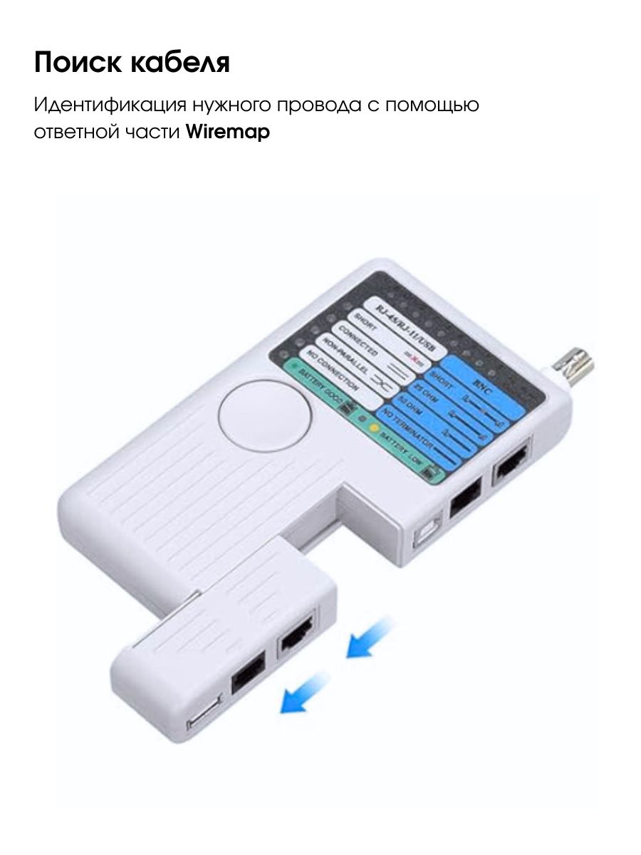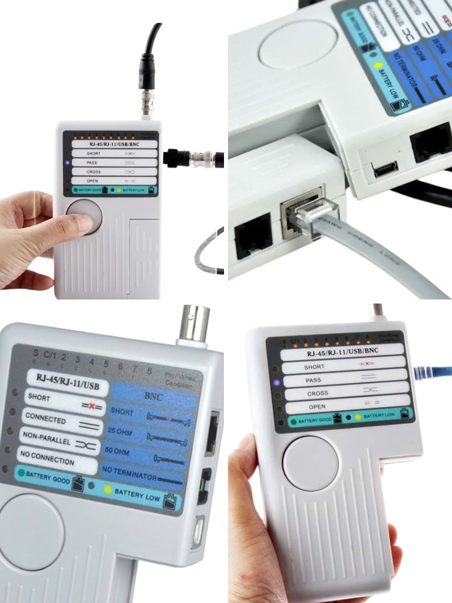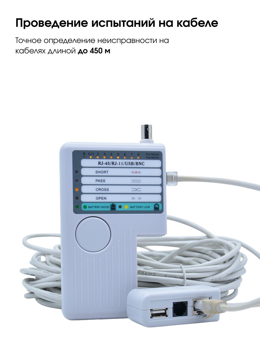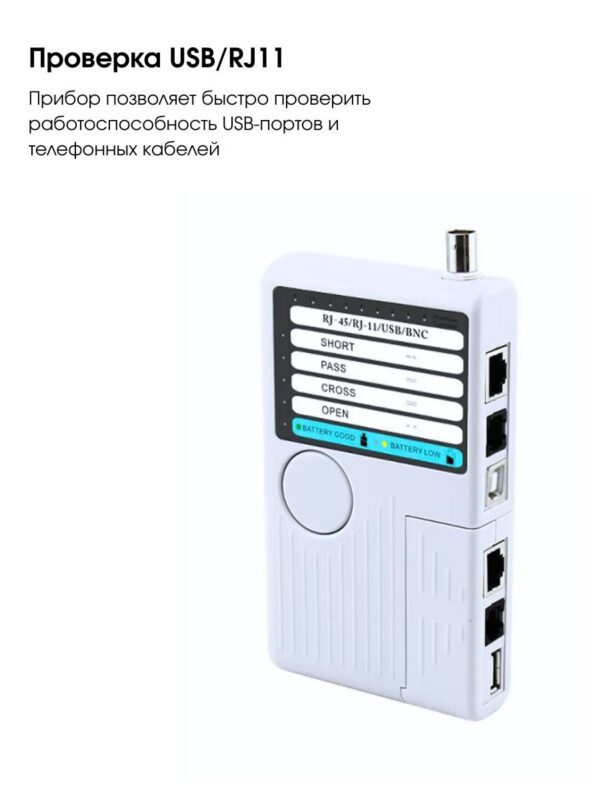 Универсальный тестер кабелей, предназначенный для проверки целостности и диагностики сетевых соединений:
