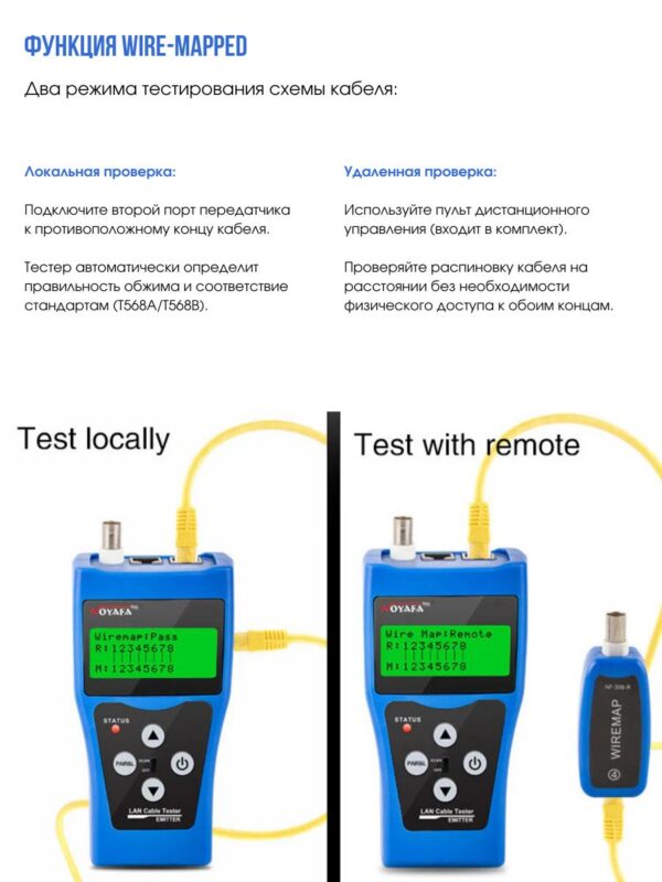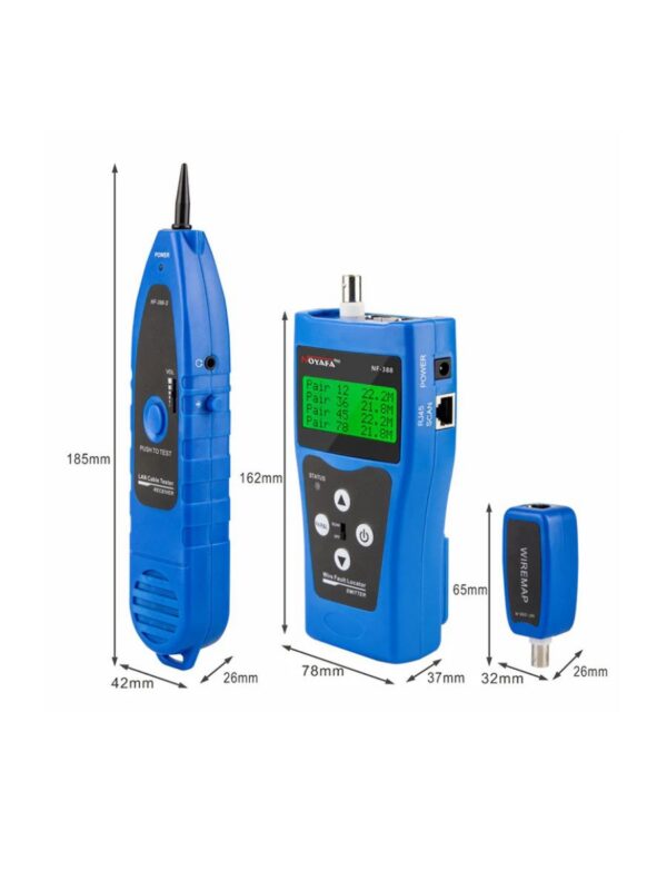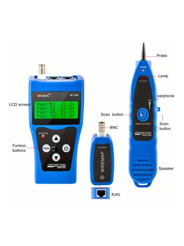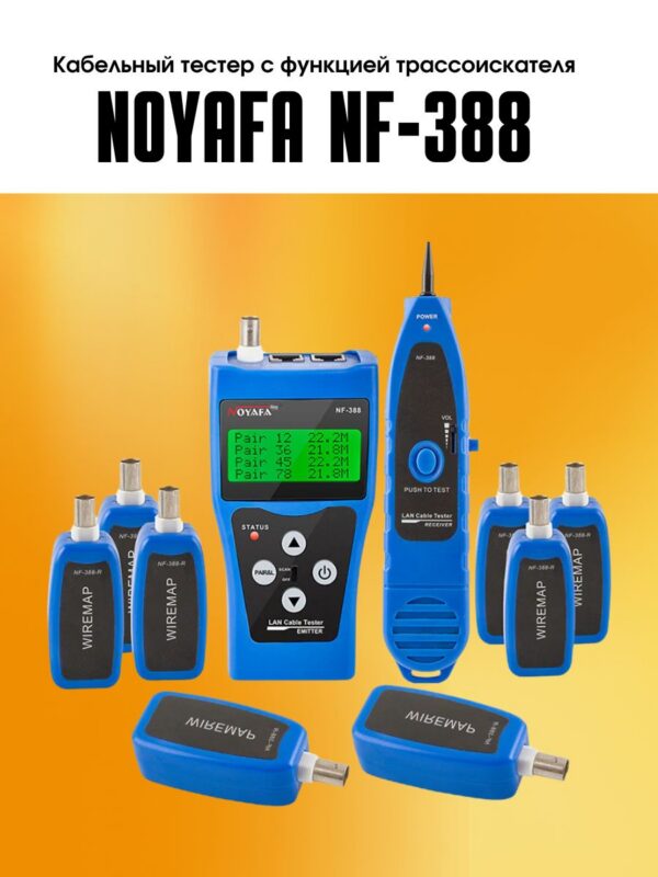 Noyafa NF-388 с 8 удаленными идентификаторами предназначен для проверки кабельных линий RJ45/RJ11/USB и коаксиального кабеля.