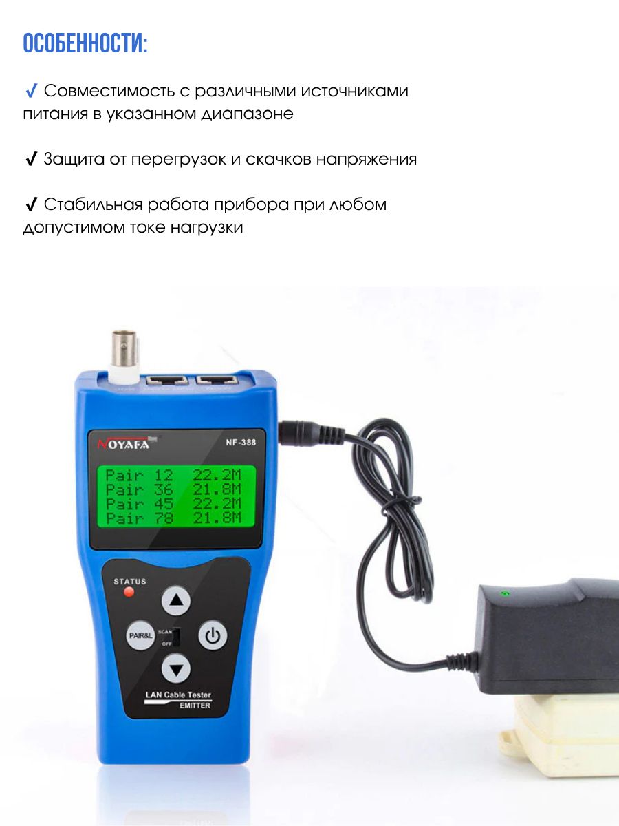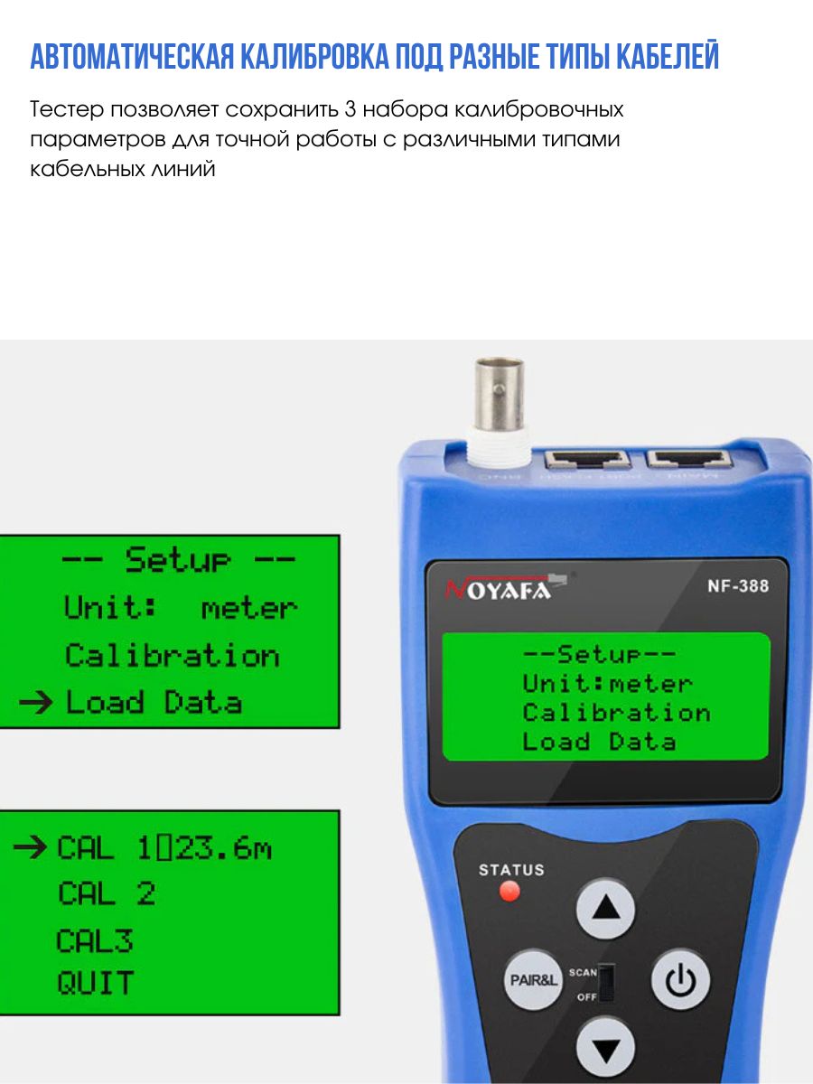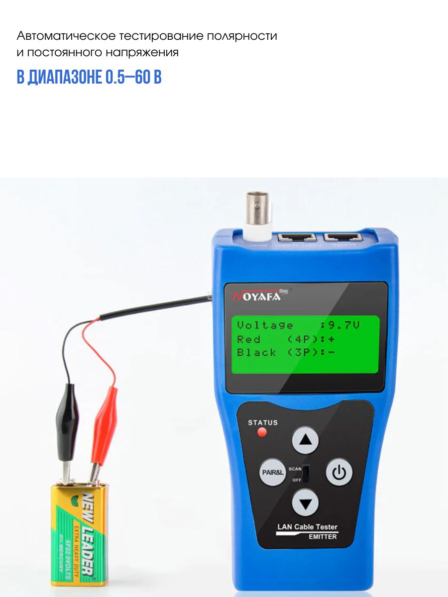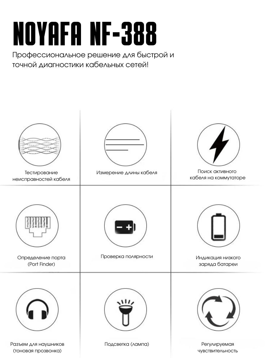 Noyafa NF-388 с 8 удаленными идентификаторами предназначен для проверки кабельных линий RJ45/RJ11/USB и коаксиального кабеля.
