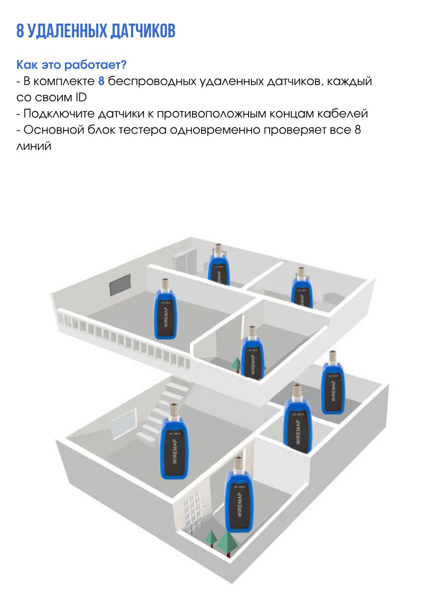 - 8 удаленных идентификатора помогают тестировать 8 кабелей одновременно;