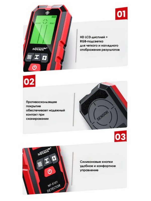 - Удобный LCD-дисплей и звуковые сигналы — информация отображается на ярком экране, а световые и звуковые оповещения помогут не пропустить скрытые коммуникации.