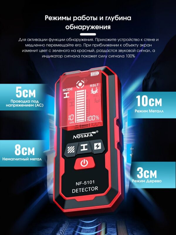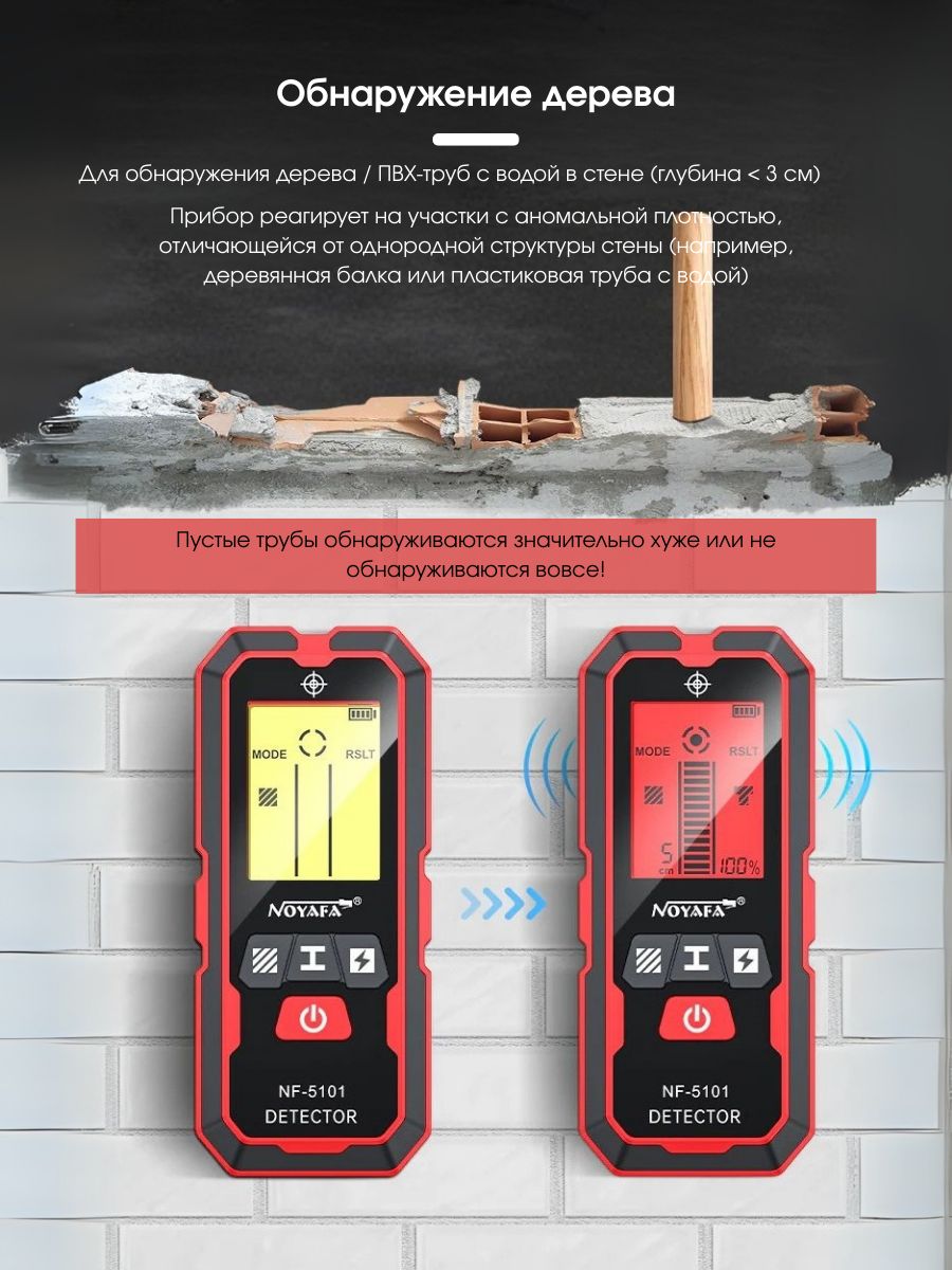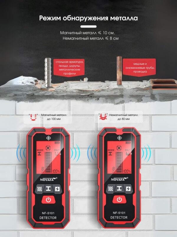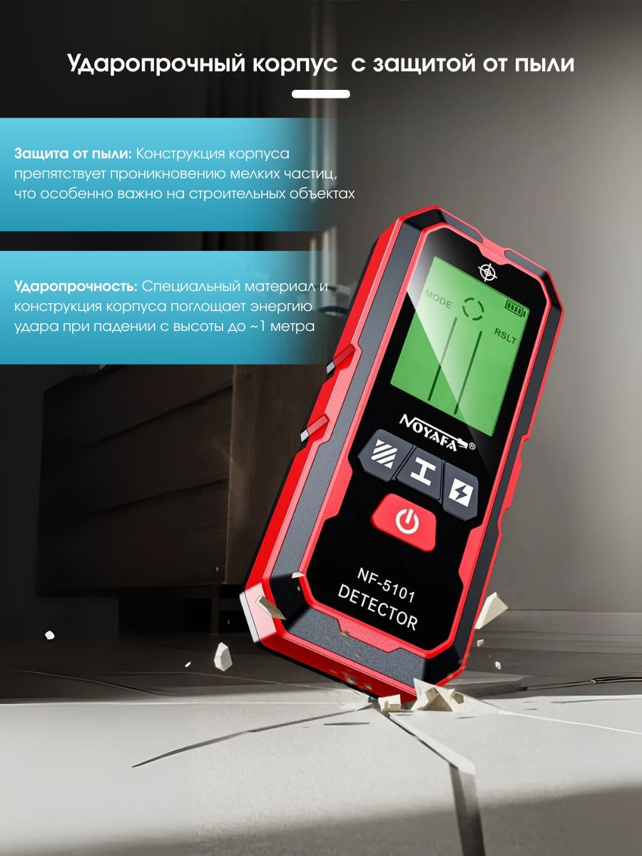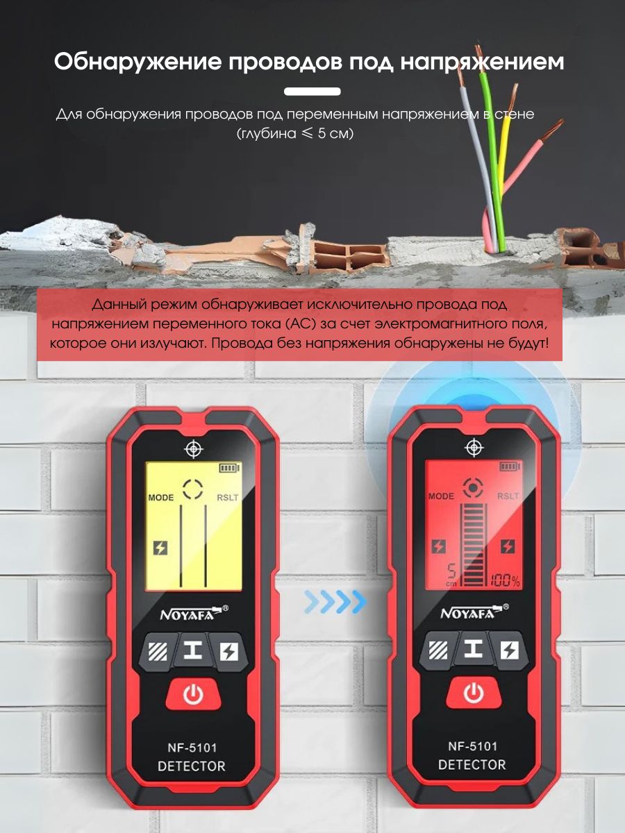 Этот прибор объединяет три режима работы и помогает находить металлические трубы, провода под напряжением и другие скрытые объекты за стенами, потолками и полами. Он станет незаменимым помощником при ремонте, монтаже мебели, установке бытовой техники и электромонтажных работах.