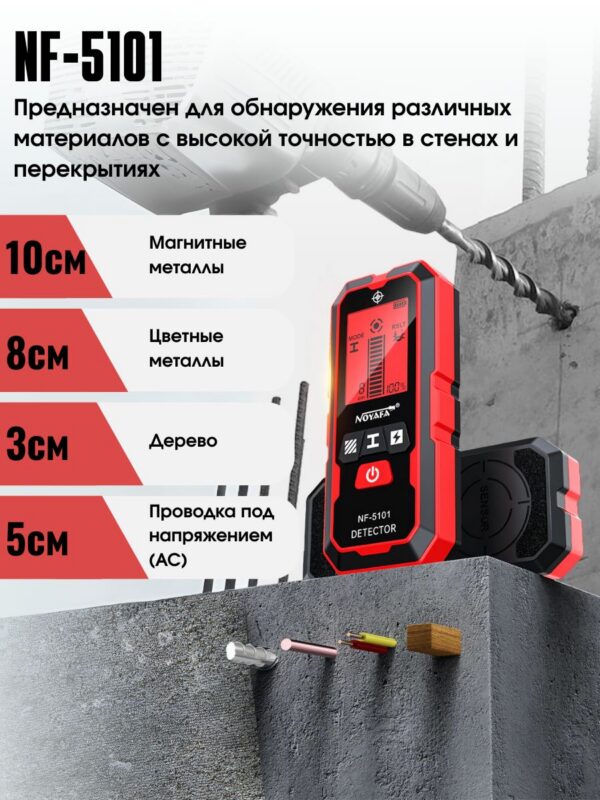 - Точная работа с высокой чувствительностью — современные сенсоры быстро и точно определяют расположение объектов на различной глубине, что позволяет безопасно сверлить и монтировать без риска повреждений.