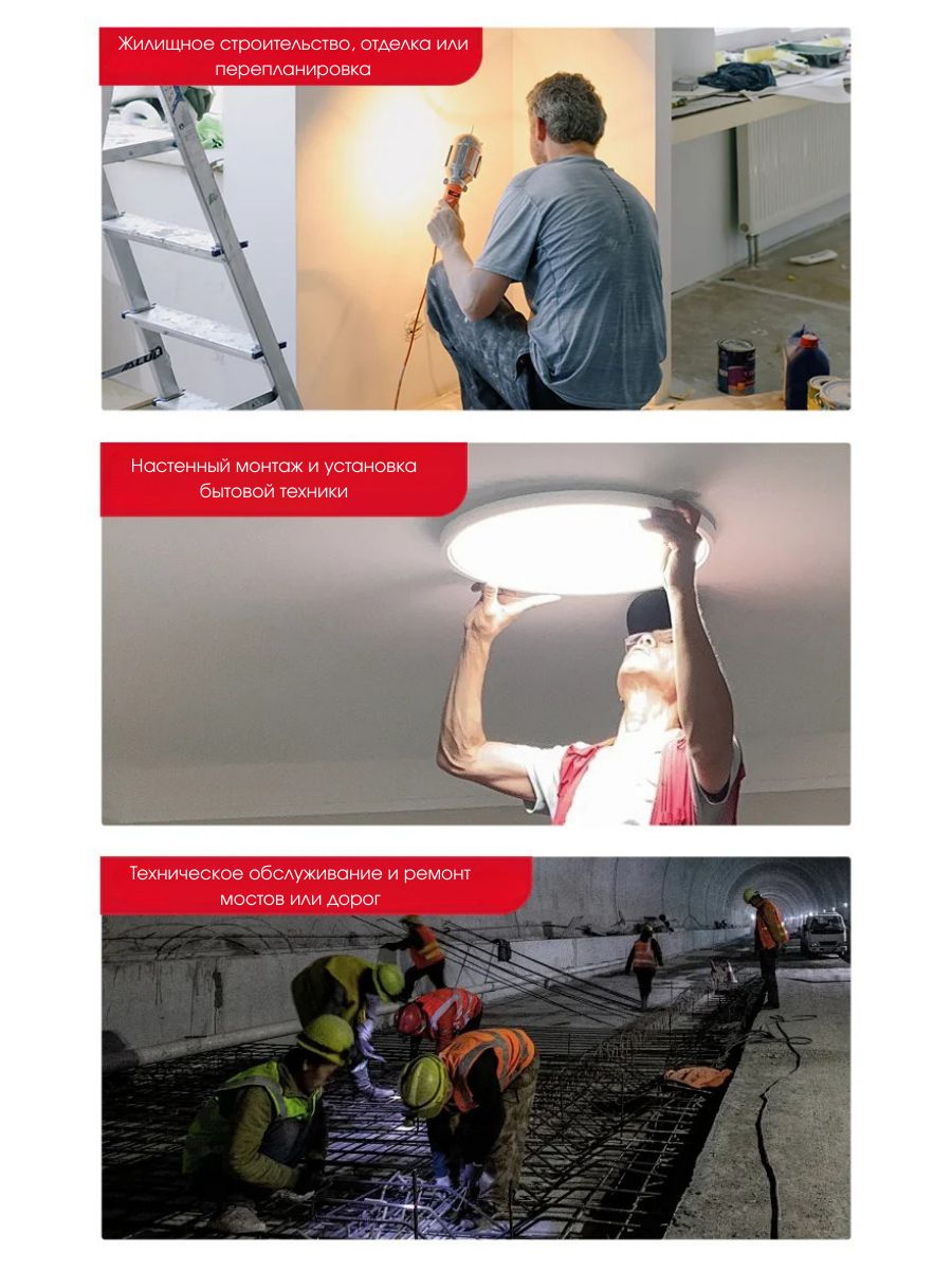 - Легкий и портативный — легко помещается в сумку с инструментами и позволяет быстро переключаться между разными объектами и зонами работы.