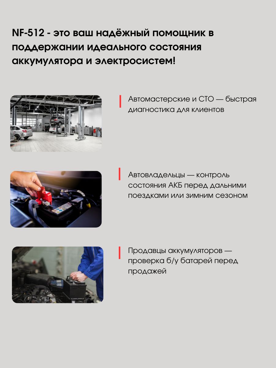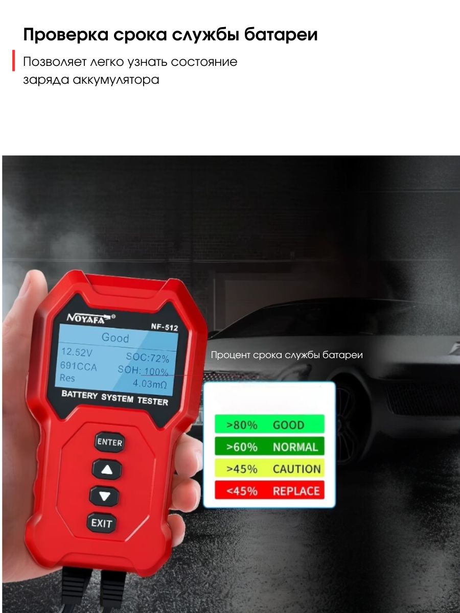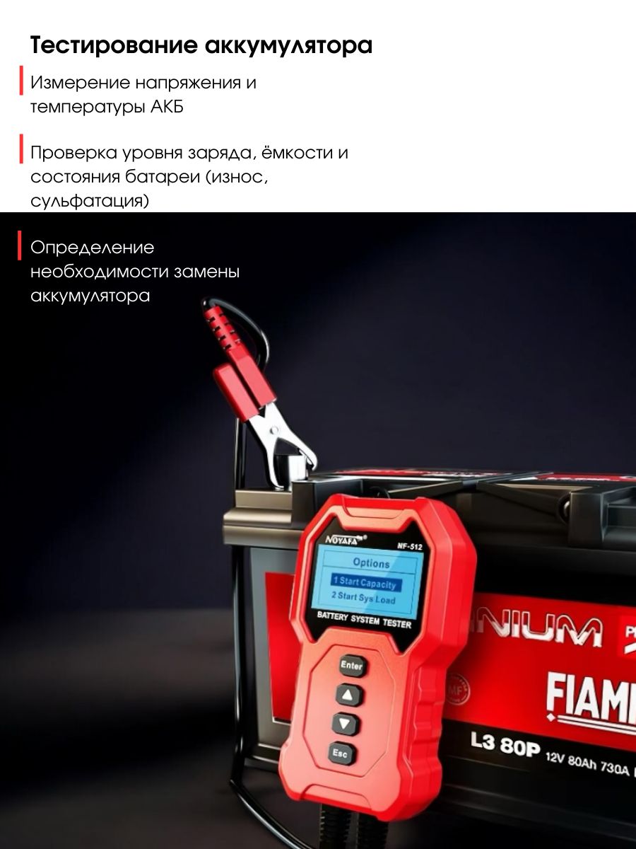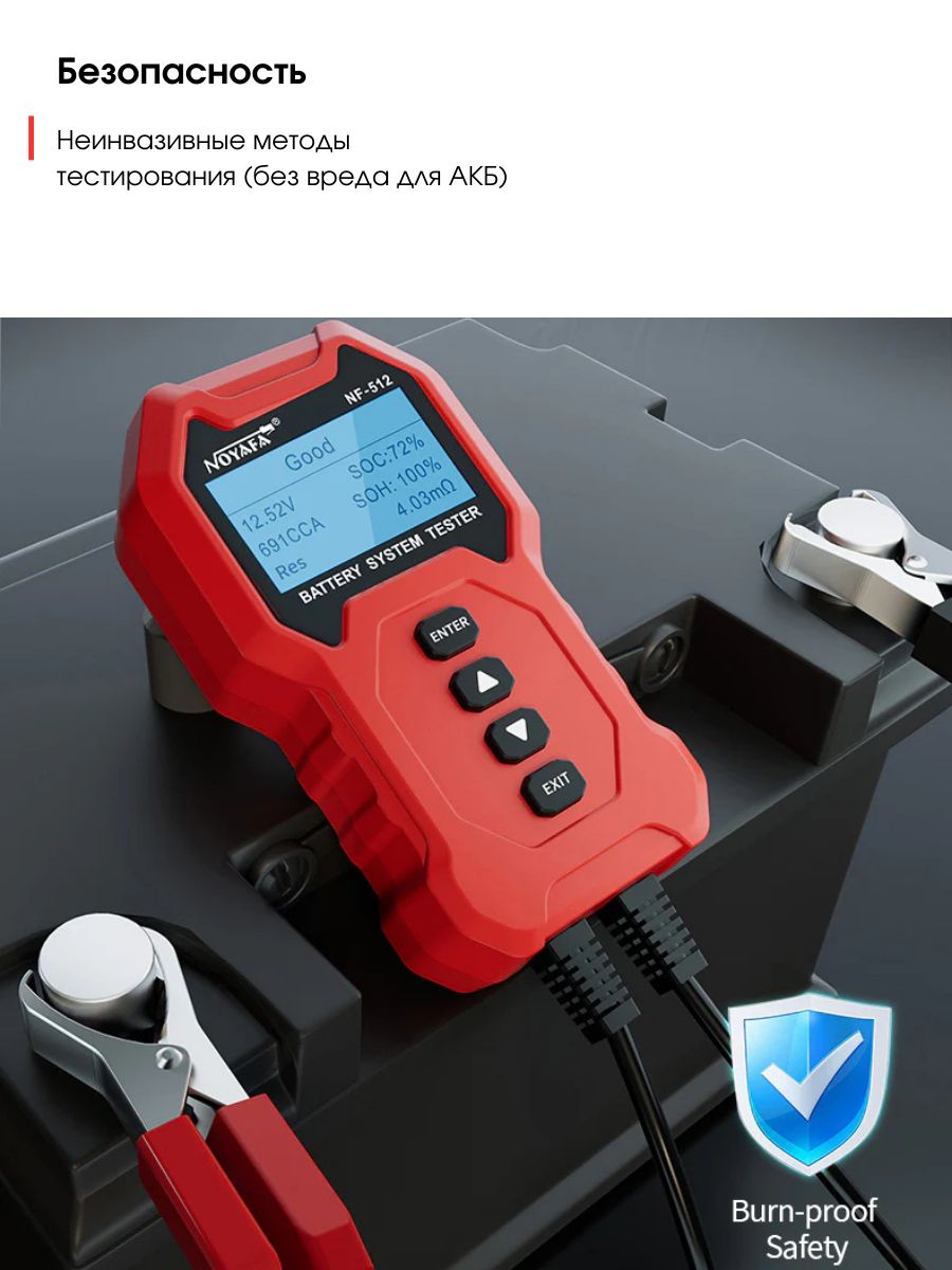 Тестер аккумулятора Noyafa NF-512 — это высокоэффективный акб тестер, созданный для всесторонней диагностики разных типов аккумуляторов, таких как свинцово-кислотные, литиевые и никель-металлогидридные. Устройство позволяет одновременно тестировать до четырех аккумуляторов, что значительно ускоряет процесс проверки. Диапазон измерения емкости варьируется от 5 до 200 Ач, в то время как сопротивление может определяться в пределах от 0 до 99 МОм.
