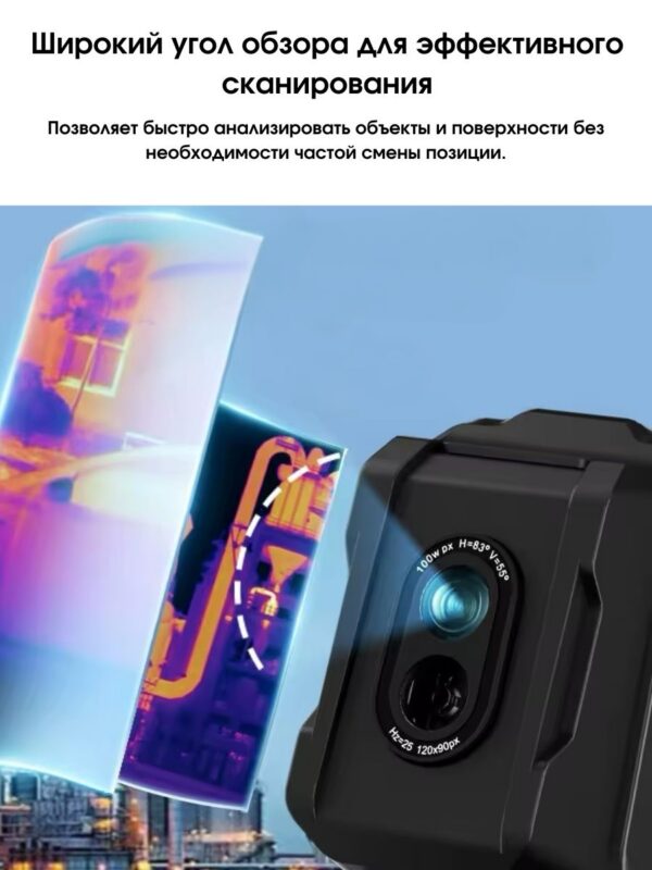 Полное сканирование: Захват объектов в широком поле зрения (по горизонтали = 55°, по вертикали = 83°), обеспечивая полный охват тепловизионного изображения.