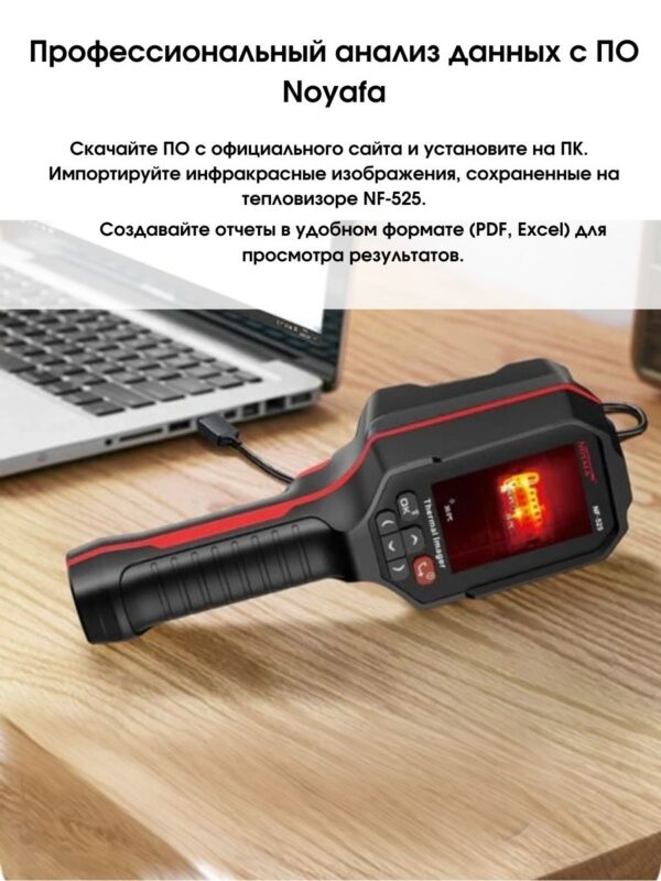 Поддержка рабочего стола: Загрузите программное обеспечение NOYAFA Thermal Imager на компьютер, подключите тепловизор к компьютеру для детального просмотра и анализа.