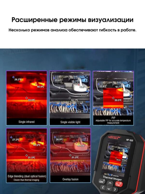 Автофокусировка и обновление: Фокусировка на горячих и холодных точках, мгновенное отображение температуры на экране. Обновление каждые несколько секунд (настраивается).