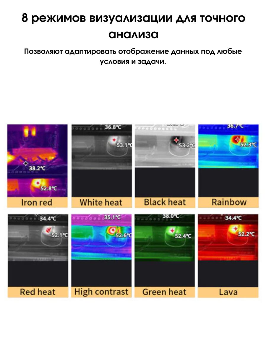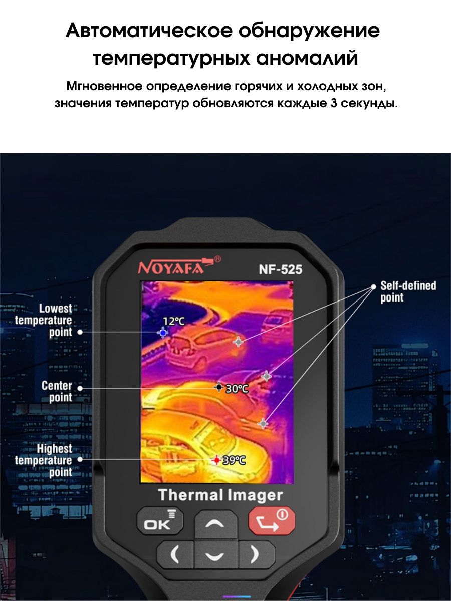 Автофокусировка и обновление: Фокусировка на горячих и холодных точках, мгновенное отображение температуры на экране. Обновление каждые несколько секунд (настраивается).