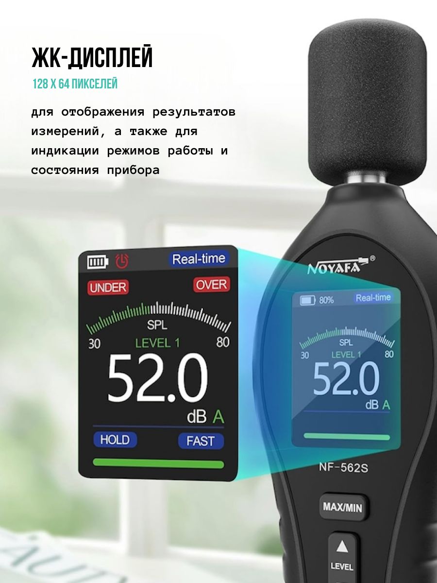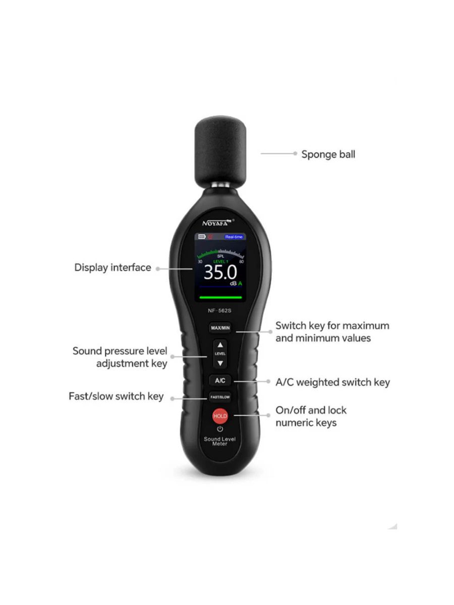 - Аутентичный продукт NOYAFA : NF-562S — это продукт известного китайского производителя NOYAFA, гарантирующий подлинность и надежность. Он соответствует стандартам IEC651 TYPE2 и ANSI S1.4 TYPE 2, гарантируя точность и качество.