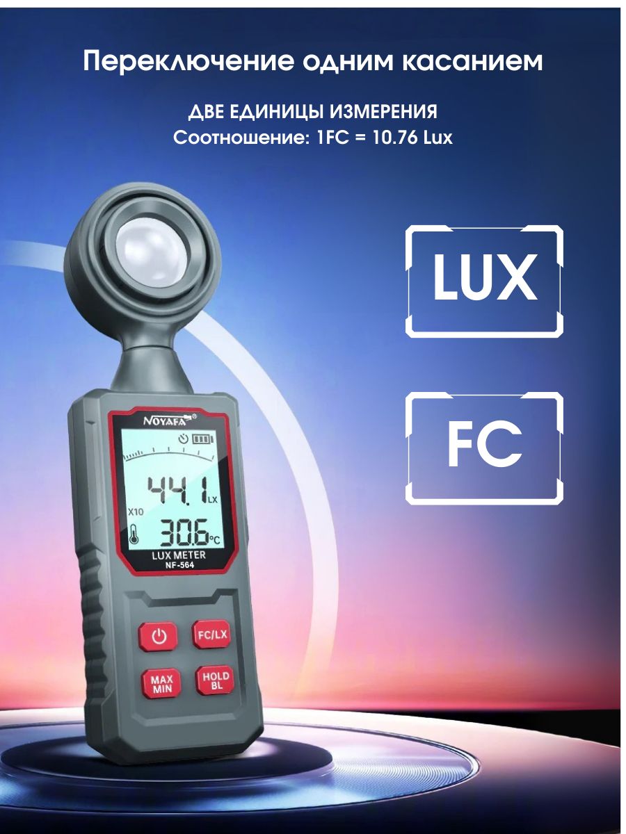 - Два измерительных режима: поддержка единиц LUX и FC обеспечивает гибкость. В разных сферах могут использовать разные единицы, и этот прибор учитывает такие потребности без необходимости ручного пересчёта.
