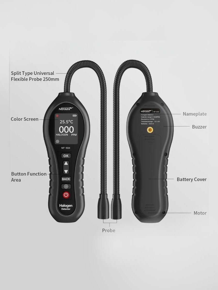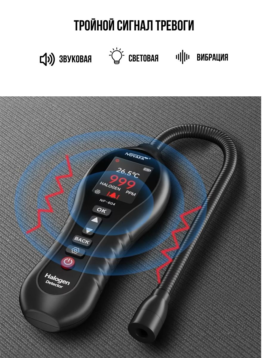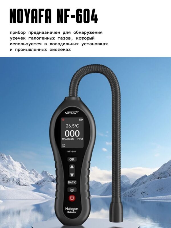 Газовый детектор галогеновых хладагентов NOYAFA NF-604 используют для обнаружения утечек промышленного оборудования, бытовой техники, медицинского оборудования, газопроводов и т.п.