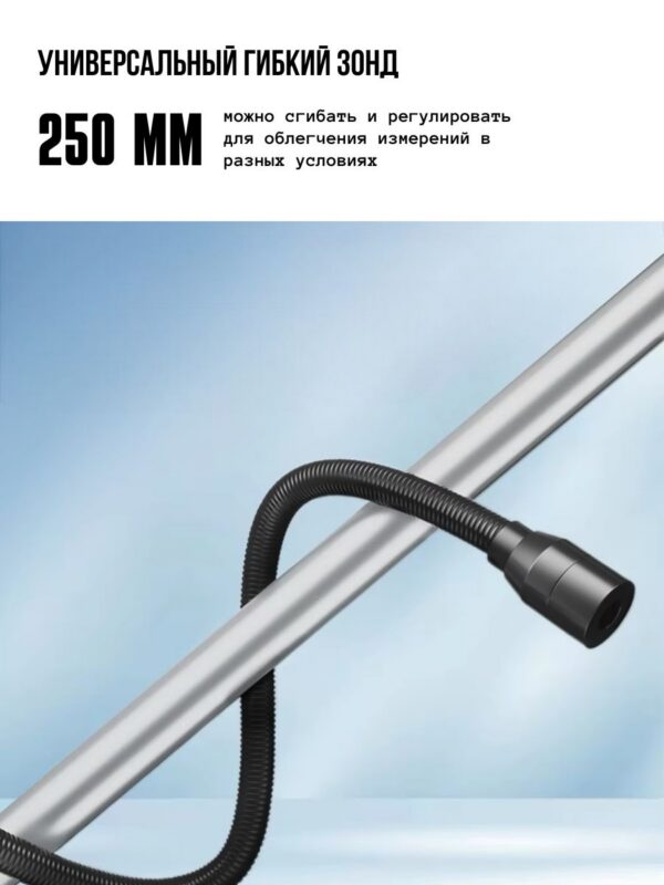- 25-сантиметровый гибкий зонд позволяет находить истоки в труднодоступных местах.