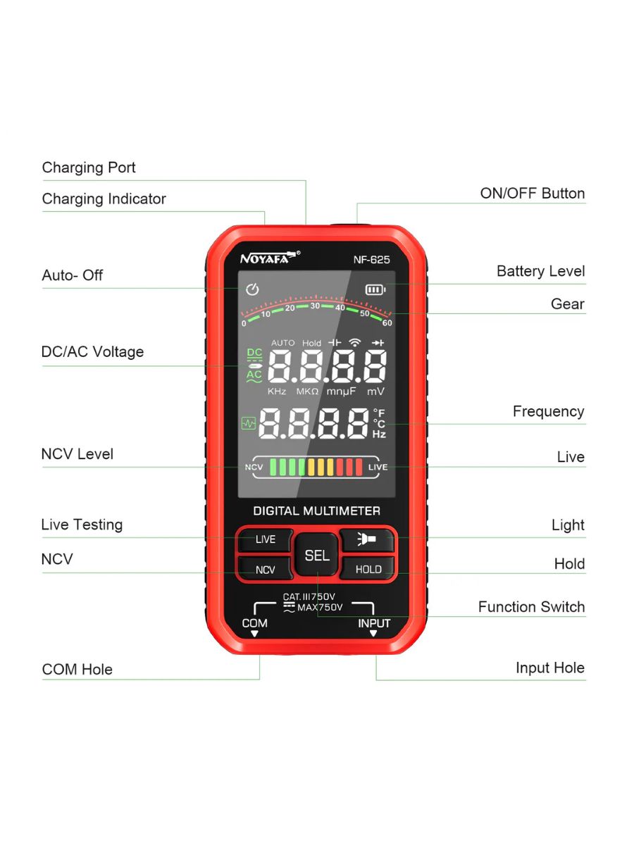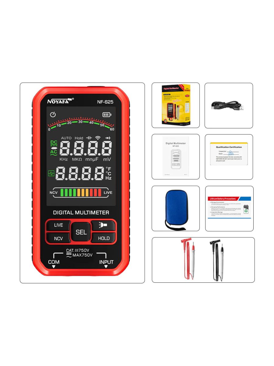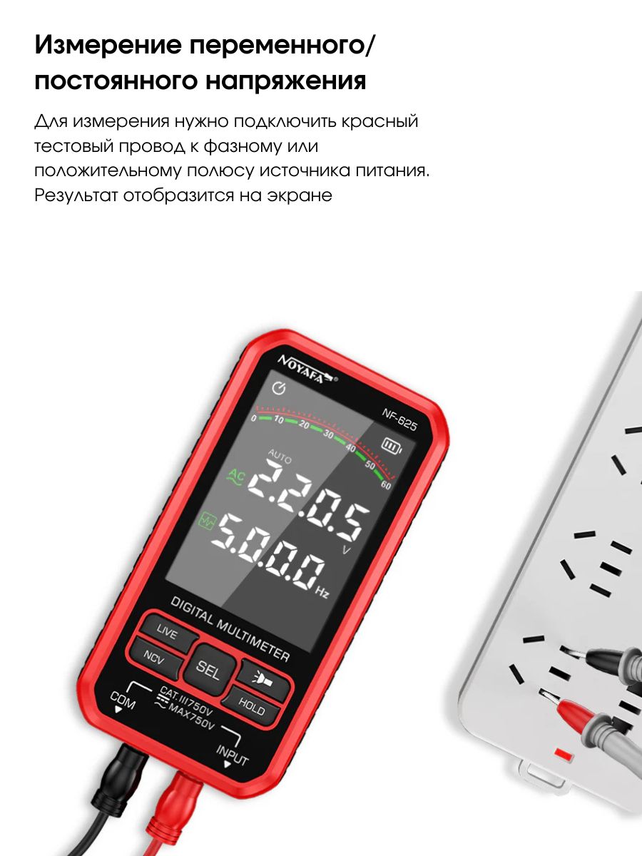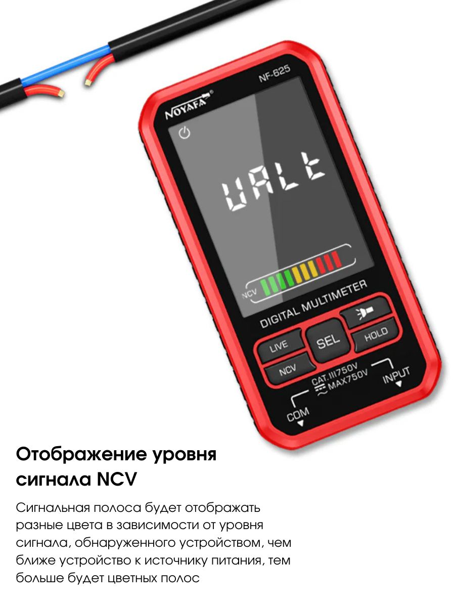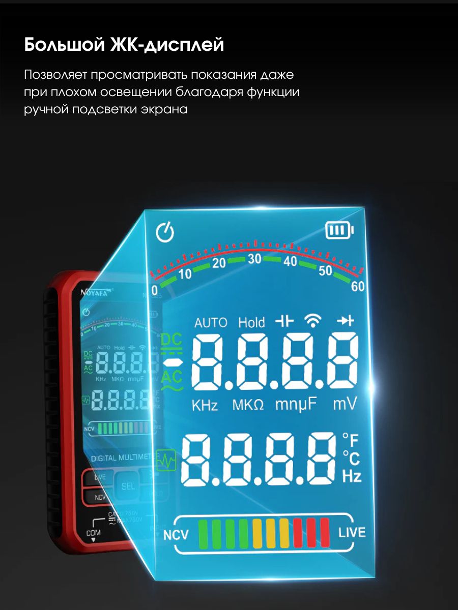 ✅ Безопасность и NCV-обнаружение – Трёхцветные индикаторы отображают уровень сигнала. Устройство оснащено защитой от перегрузки, устойчиво к пыли и каплям.