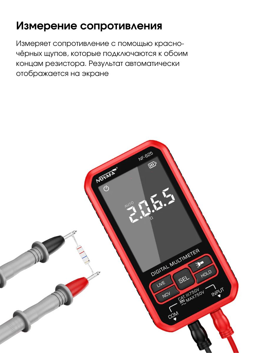 ✅ Многофункциональность – Поддерживает измерение сопротивления, емкости, температуры, частоты, напряжения (AC/DC) и других параметров.