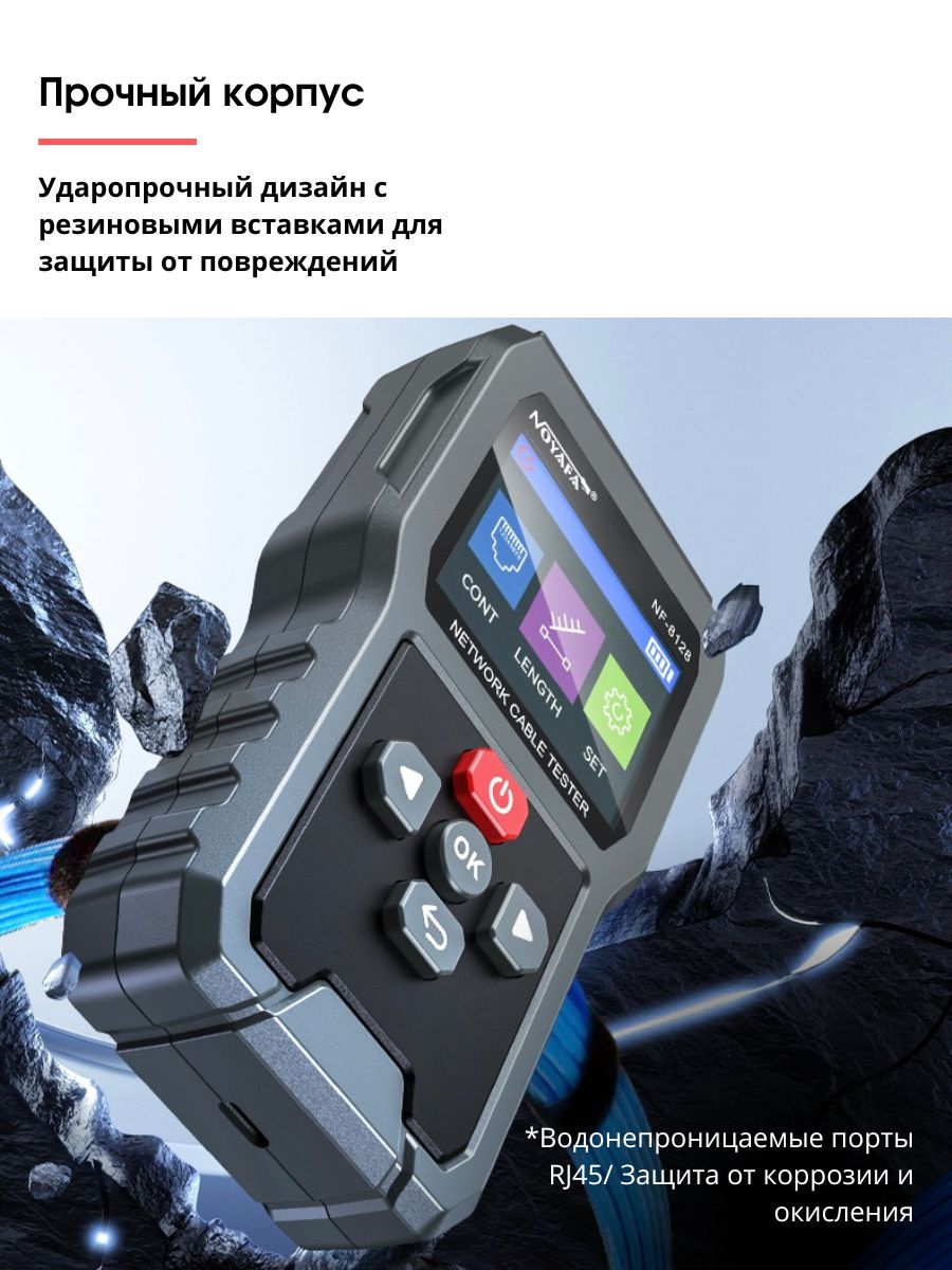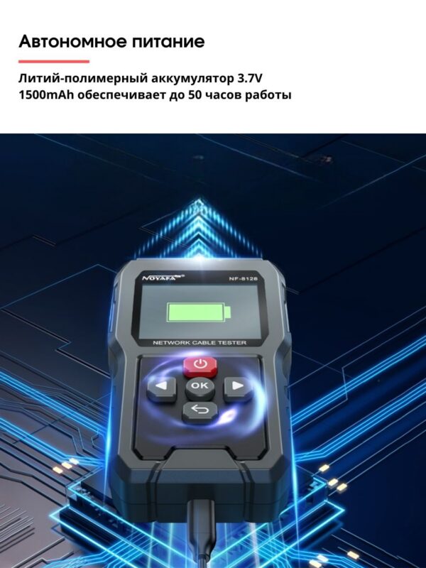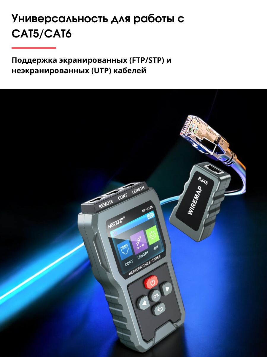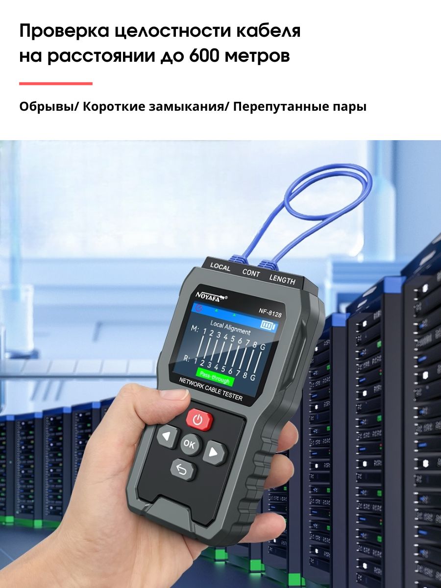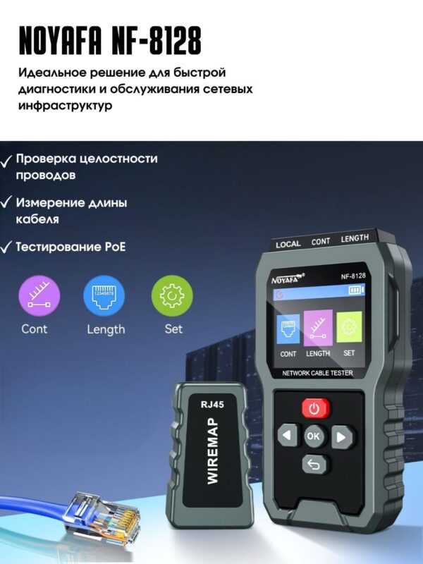 Cетевой кабельный тестер для RJ45 Noyafa NF-8128 — это высококачественное устройство, предназначенное для проверки и диагностики состояния сетевых кабелей. Оно идеально подходит для специалистов, работающих с локальными сетями, а также для установки и обслуживания телефонных и Ethernet-кабелей.