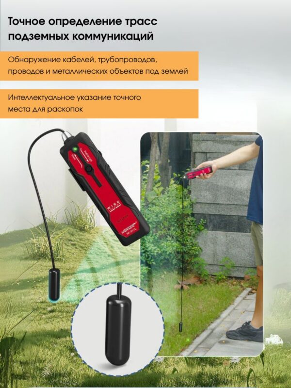- Обнаружение провода: Быстрое и удобное обнаружение проводов и кабелей под землей или внутри стены.