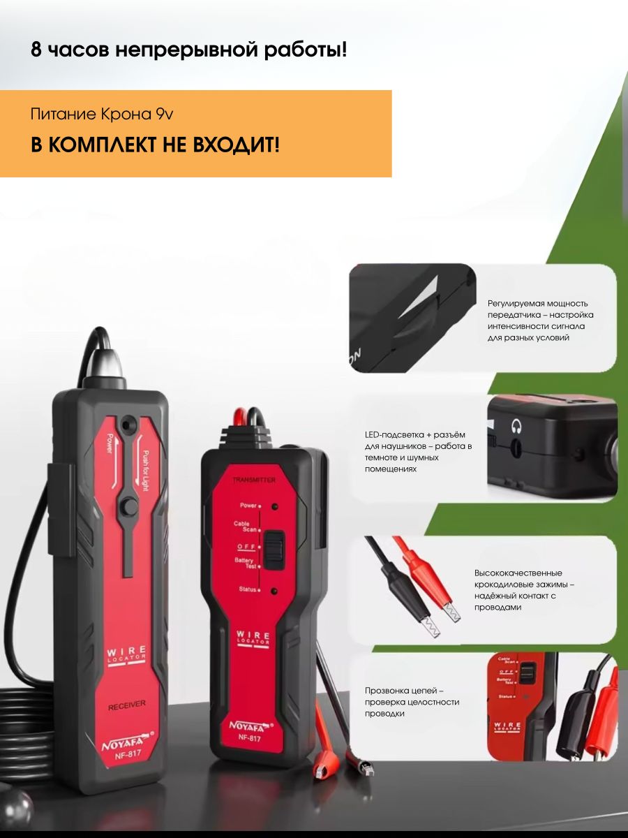 1. НЕ ИСПОЛЬЙЗУЙТЕ НА ЦЕПЯХ ПОД НАПРЯЖЕНИЕМ, чтобы не повредить тестер! Тестер предназначен только для обнаружения кабеля без напряжения.