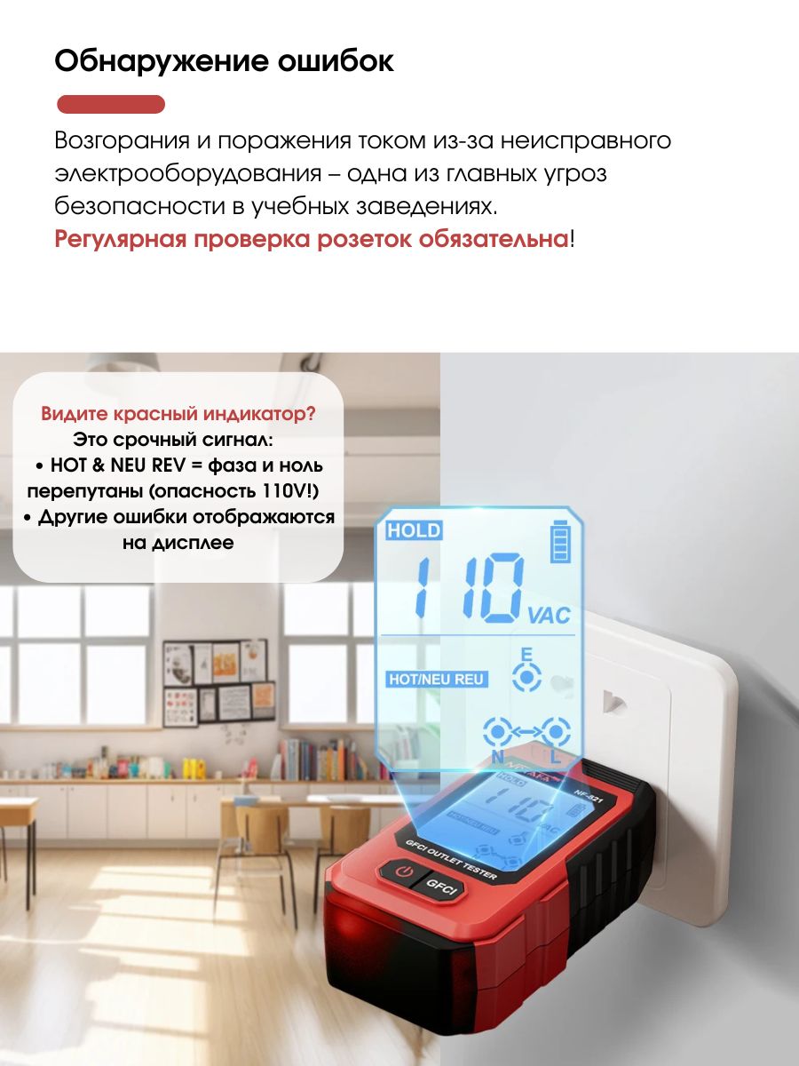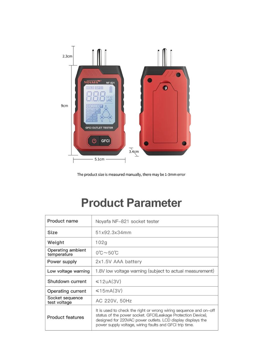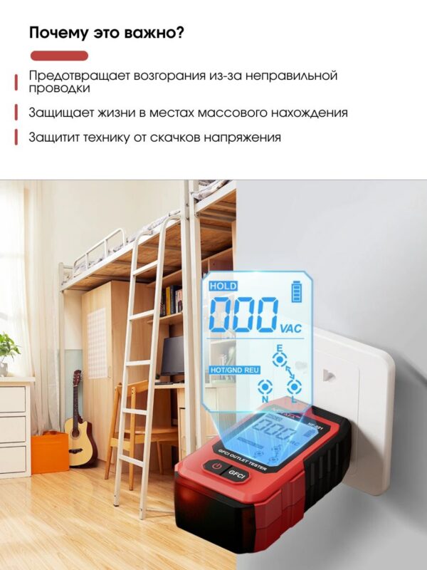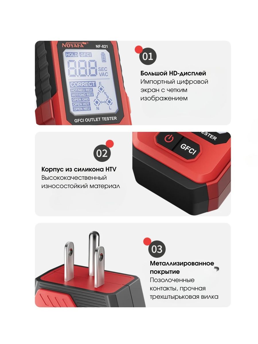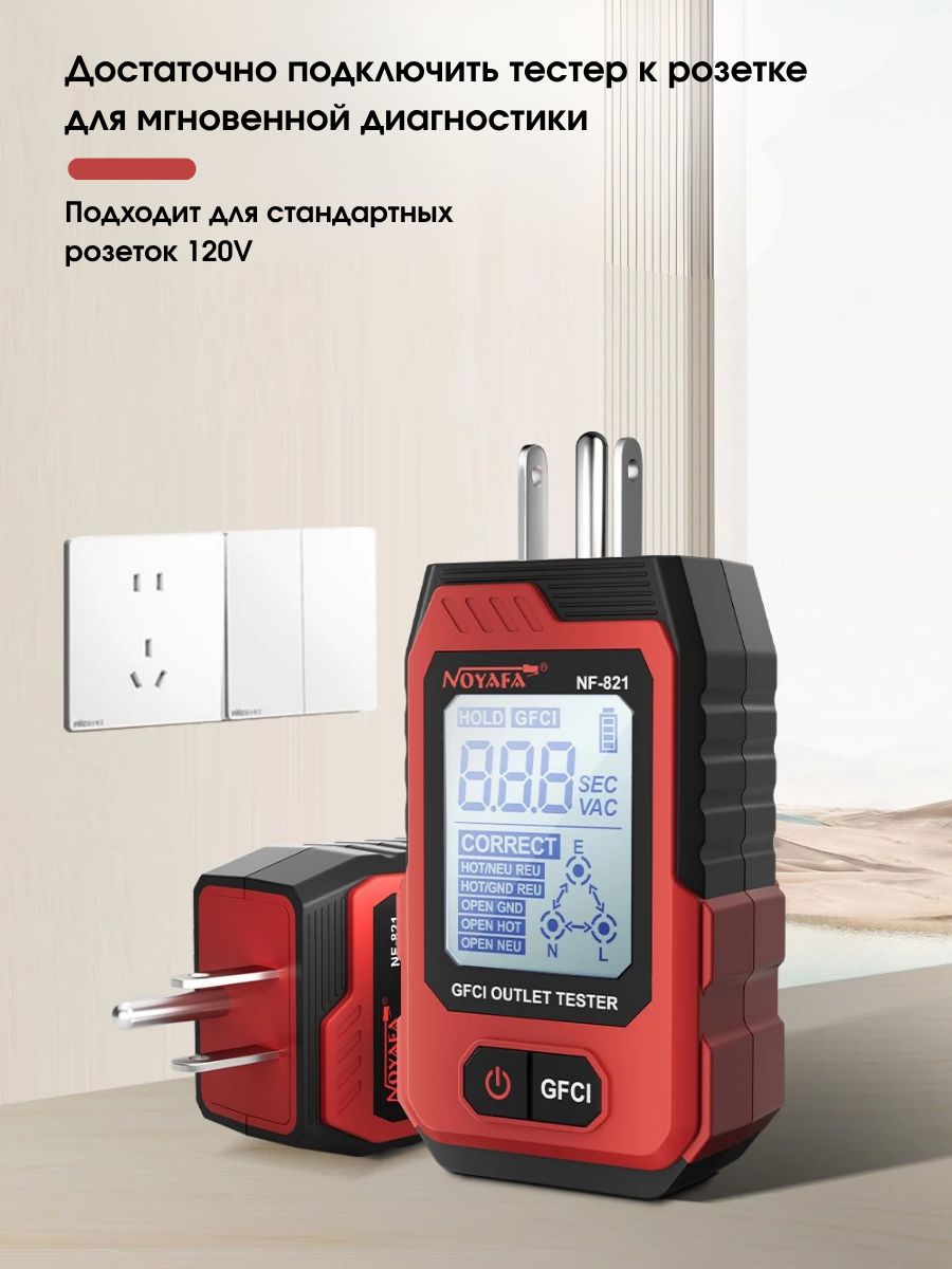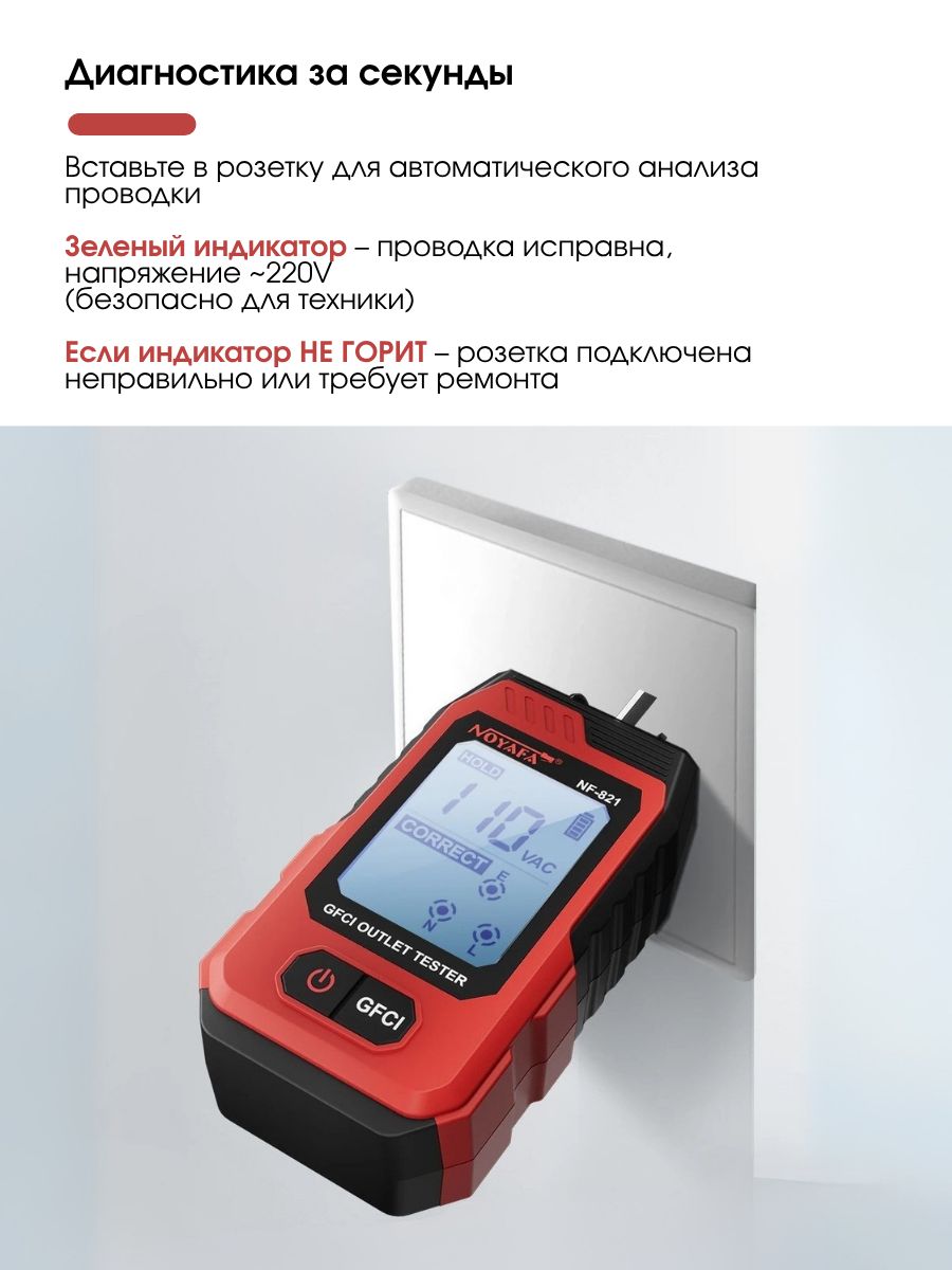 Тестер розеток Noyafa NF-821 — это идеальный инструмент для проверки электрической системы вашего дома или офиса. Этот тестер поможет вам определить наличие напряжения в розетках и предотвратить возможные опасности при работе с электричеством.