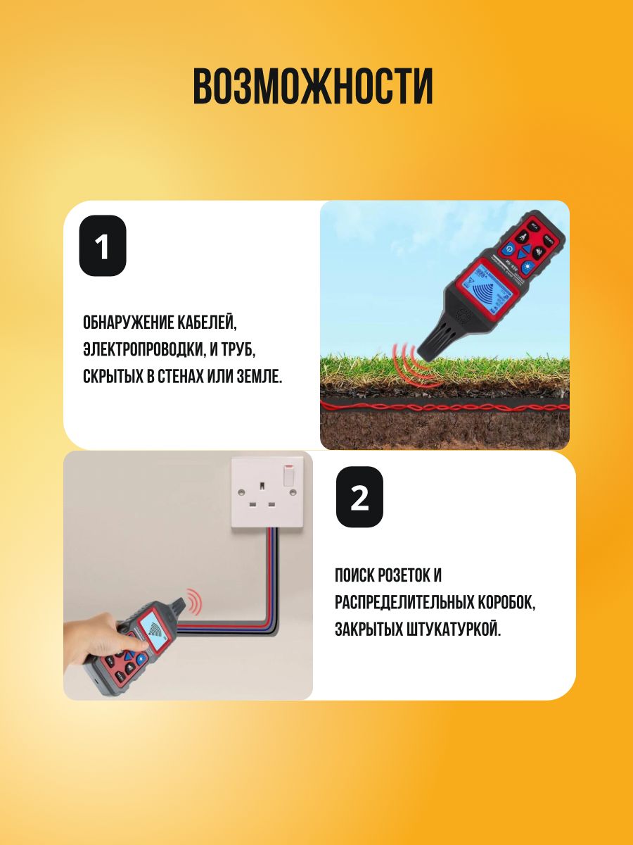 -Обнаружение кабелей, электропроводки, металлических труб, скрытых в стенах или земле