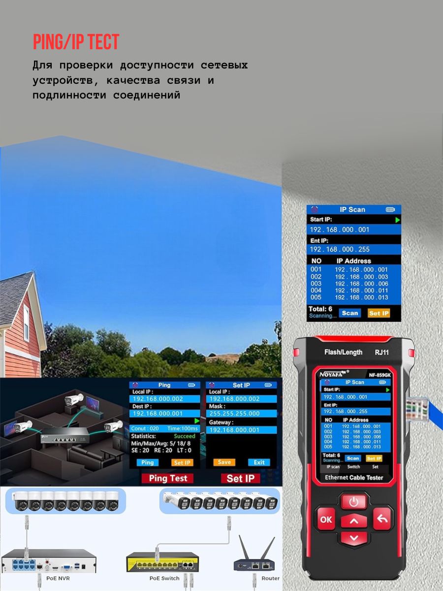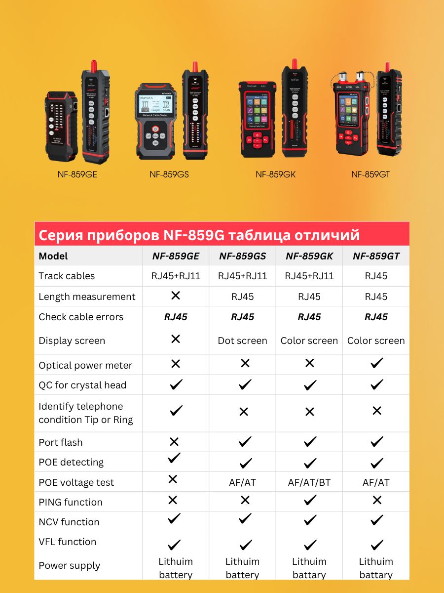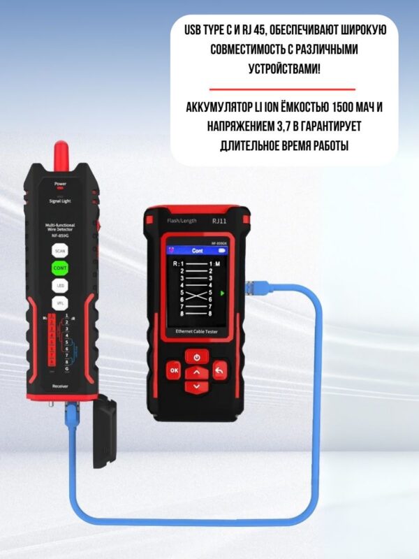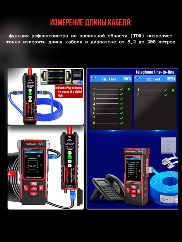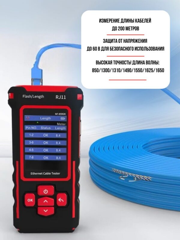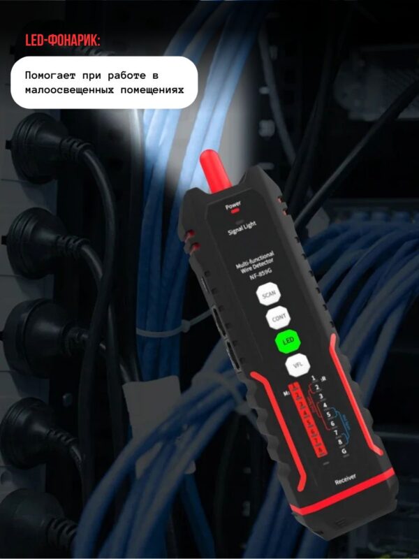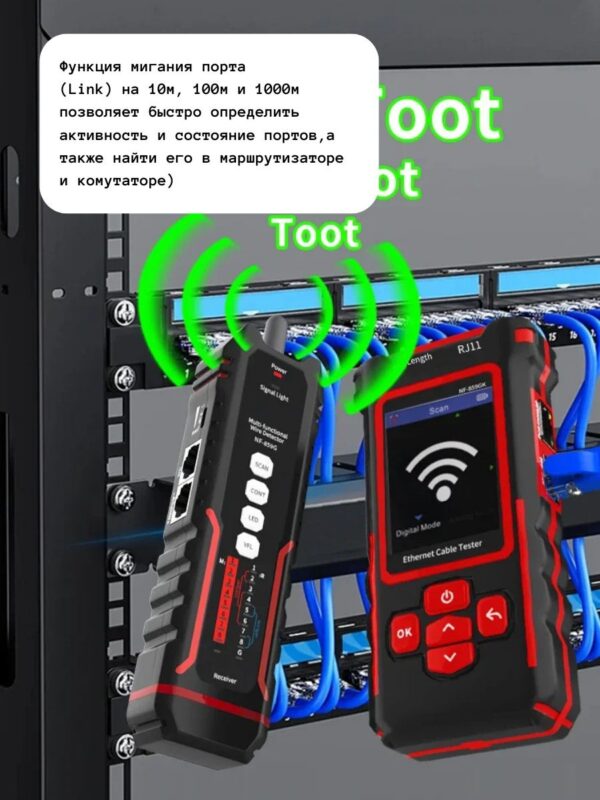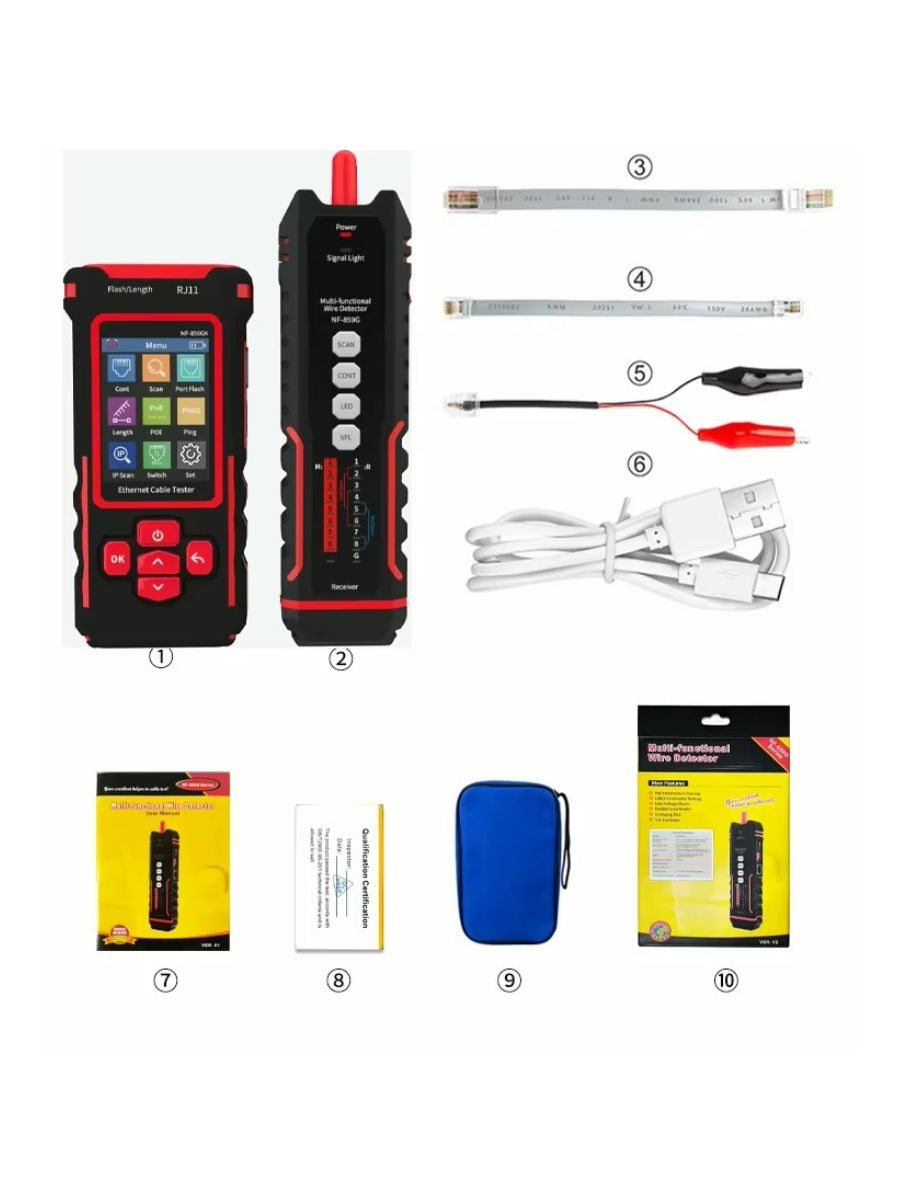 🔵【ТЕСТЕР СЕТЕВОГО КАБЕЛЯ】 NOYAFA NF-859GK — Новый модернизированный многофункциональный сетевой тестер TDR, инструмент для тестирования IP-адресов с функцией сканирования IP-адресов, POE-тест, сетевой кабель с защитой от помех RJ11,RJ45, CAT5, CAT6, тест подключения, проверка скорости подключения к сети Ping, мигание портов, регулировка чувствительности, функциональный тест длины сетевого кабеля. Новое обновление приемника: добавлена функция VFL в приёмник (лазерный дефектоскоп).
