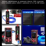 🔵【ИЗМЕРЕНИЕ ДЛИНЫ КАБЕЛЯ】 Тестер сетевого кабеля NF-859GK — это портативный прибор для измерения длины кабеля с помощью рефлектометра во временной области (TDR). Кабельный тестер может точно измерять длину кабеля в диапазоне от 8,2 футов до 656 футов / 2,5 м до 200 м, измерять данные в режиме реального времени и сканировать расстояния до места повреждения кабеля (определяет жилы попарно).