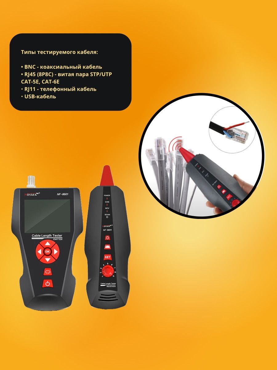 -Измерение длины кабеля: 1 … 2000 м: витая пара, коаксиальный кабель телефонный кабельUSB