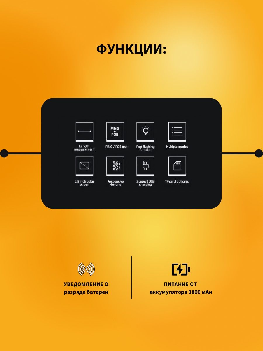 -Питание: Тестер — литиевый аккумулятор 3,7В, 1800 мАч — непрерывная работа ~ 20 ч