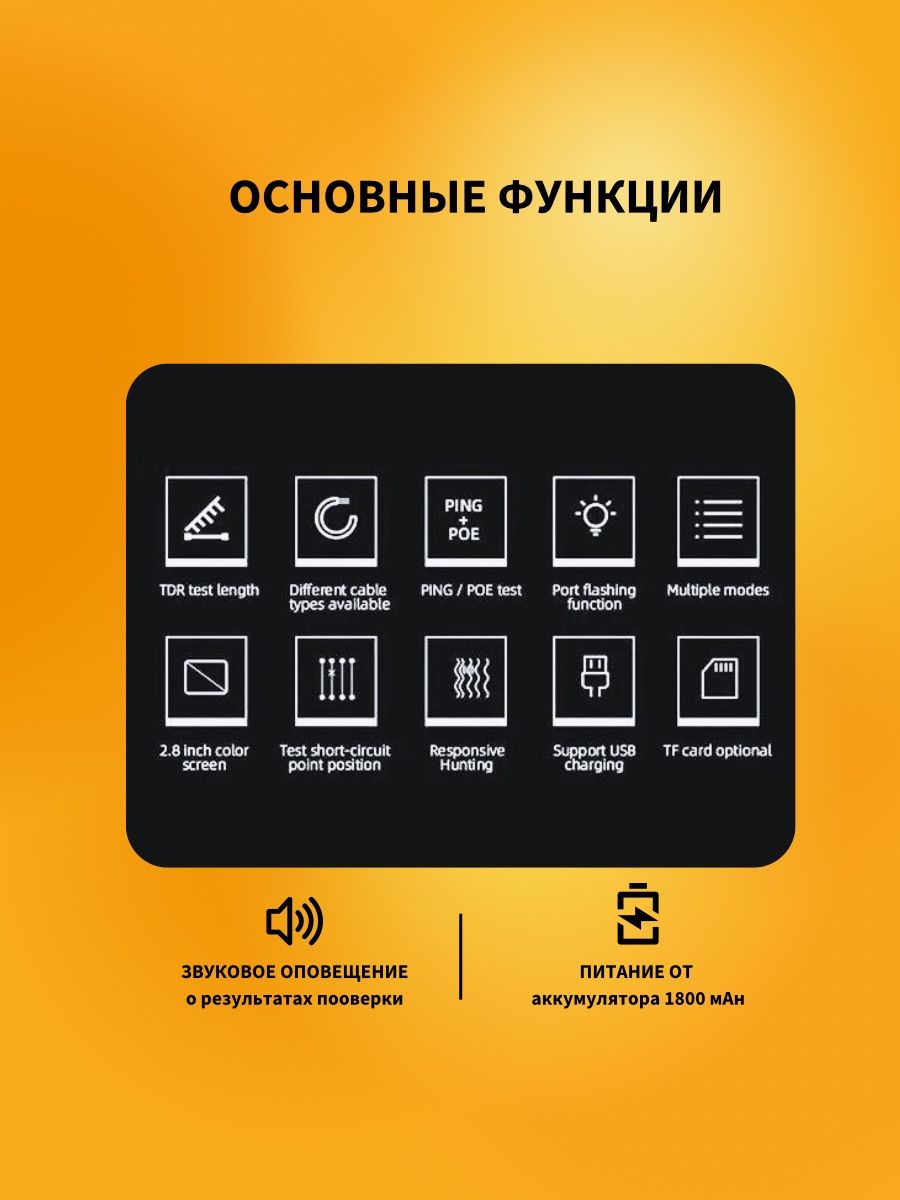 Помимо проверки линии данная модель поддерживает функции Ping-теста и определения PoE (Power over Ethernet).