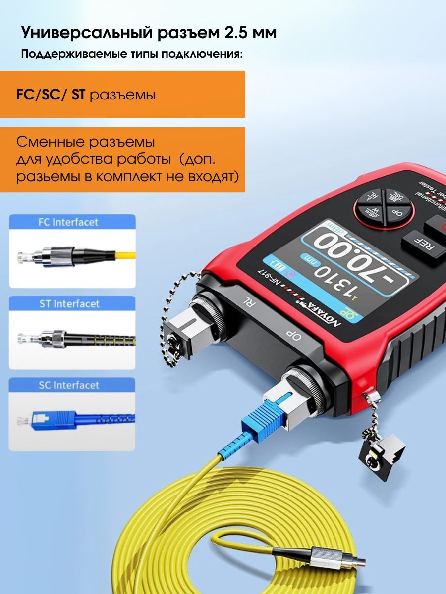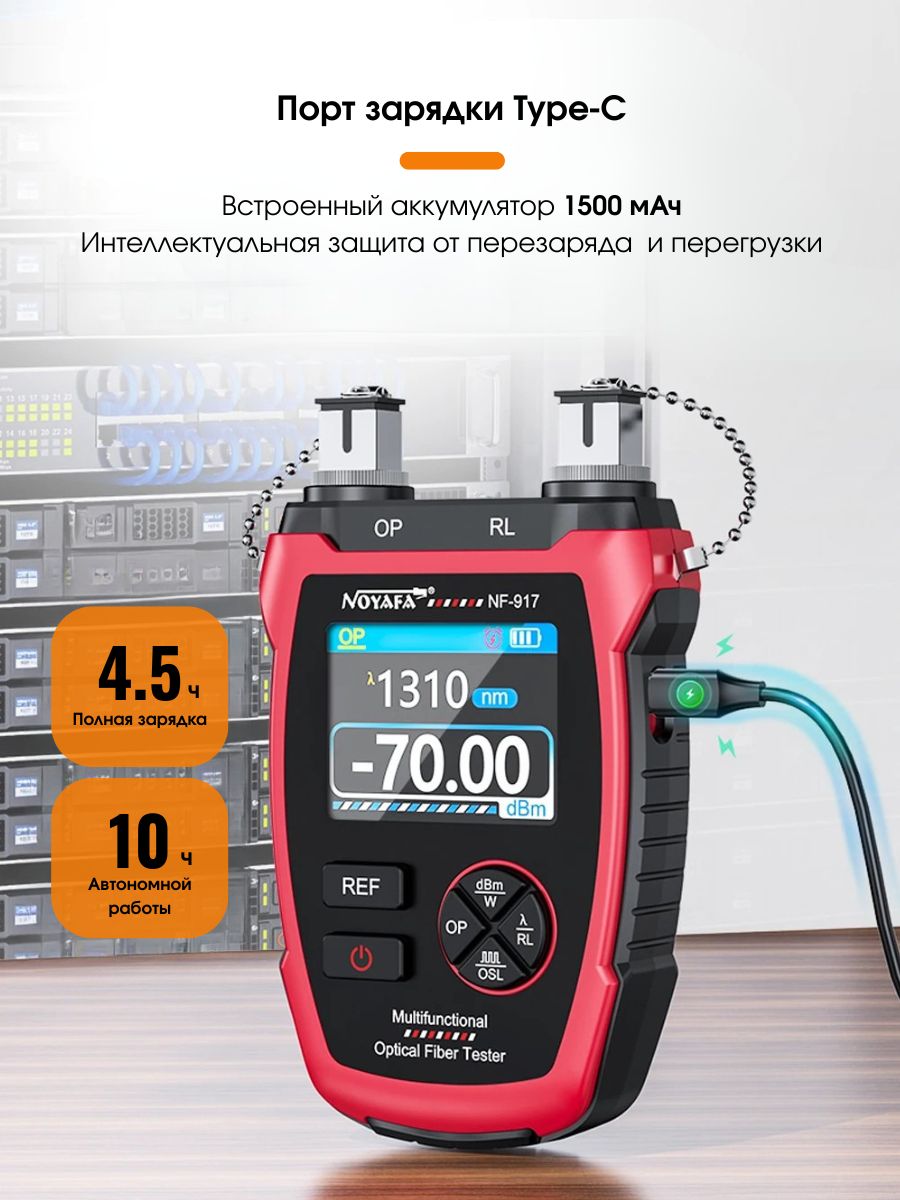 Многофункциональный оптический тестер NF-917 изготовлен в компактном корпусе. Прибор предназначен для тестирования волоконно-оптических сетей, измерения оптической мощности, а также потерь в оптических волокон.