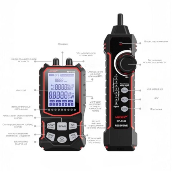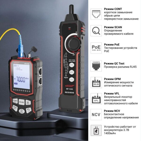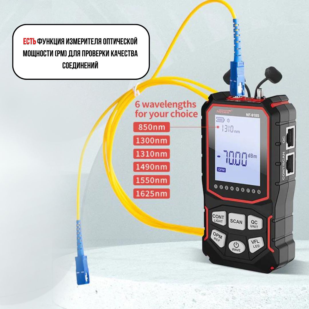 NF-918S- многофункциональный тестер, предназначен для тестирования витых пар, обнаружения кабеля, обрыва и может использоваться при монтаже и обслуживании низковольтных коммуникационных и оптических сетей.