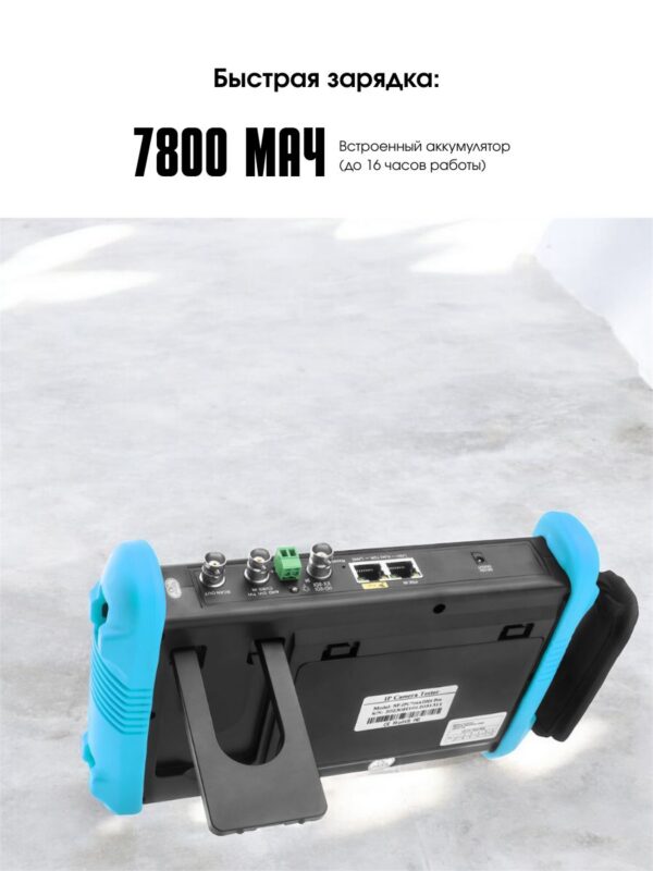 - Портативность и удобство. Компактный дизайн с малым весом делают этот тестер лёгким в транспортировке и использовании в любом месте. Вы можете легко брать его с собой — встроенной АКБ ёмкостью 7800 мАч хватает на 16 часов работы прибора.