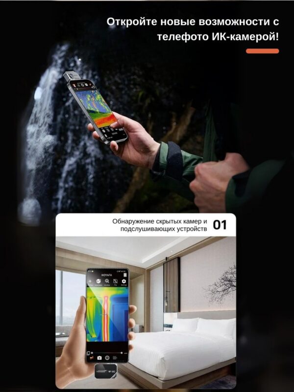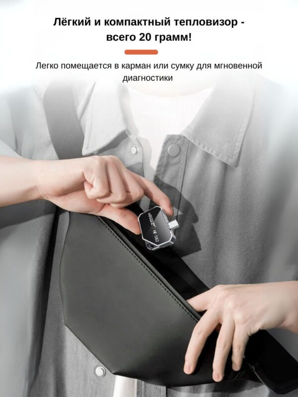 - Портативный дизайн – компактный тепловизор помещается в карман и готов к использованию в любое время и в любом месте.